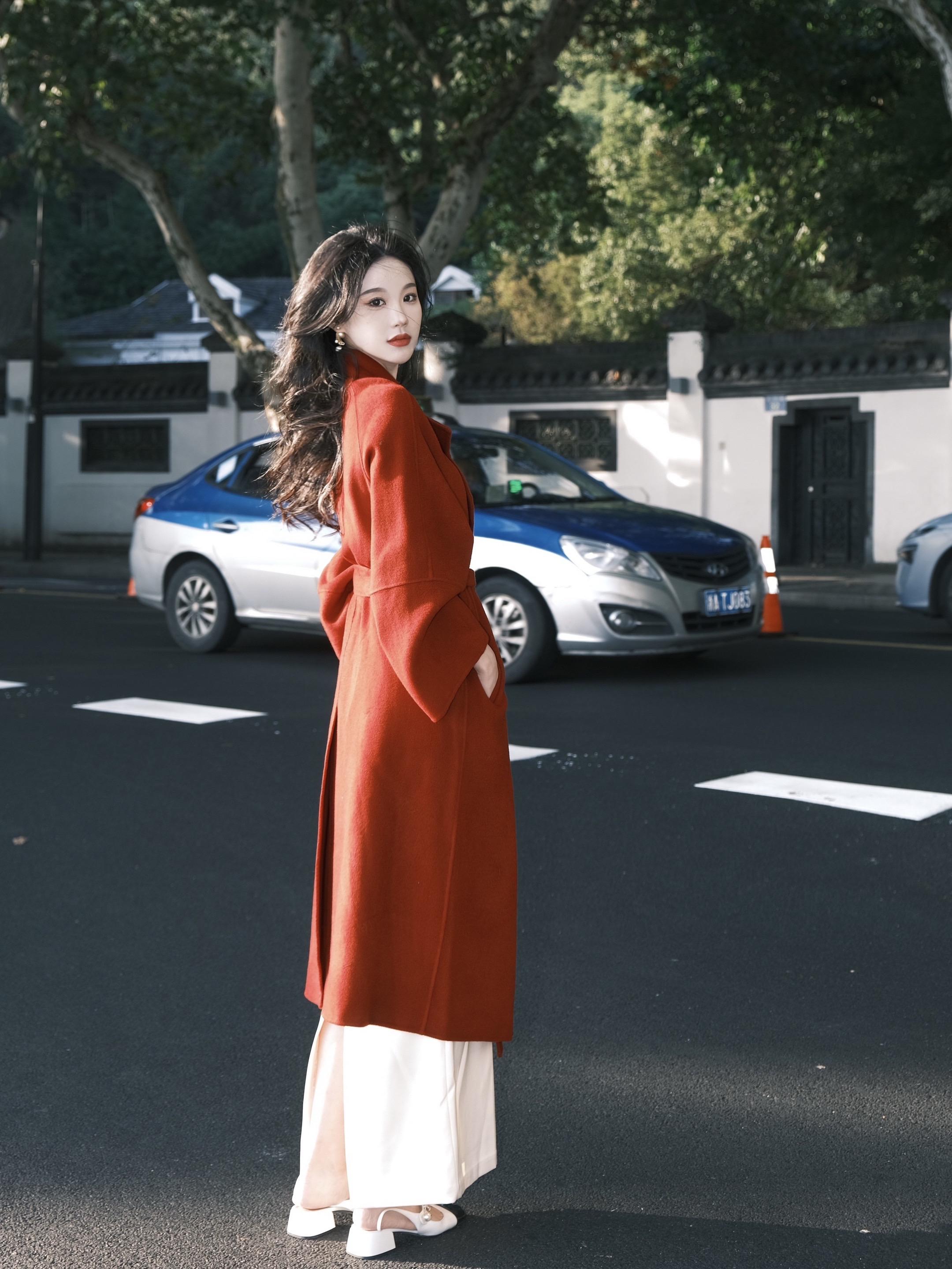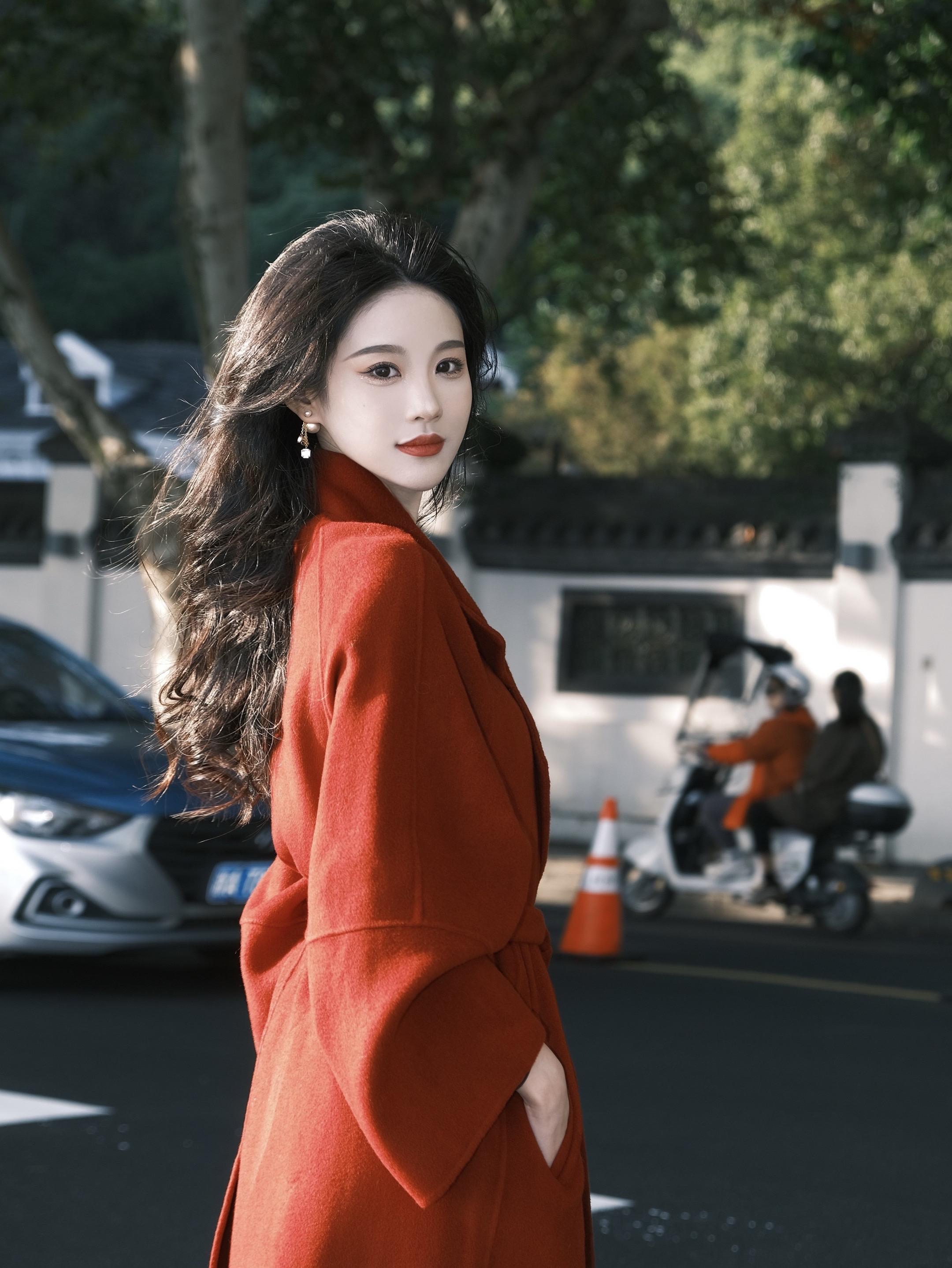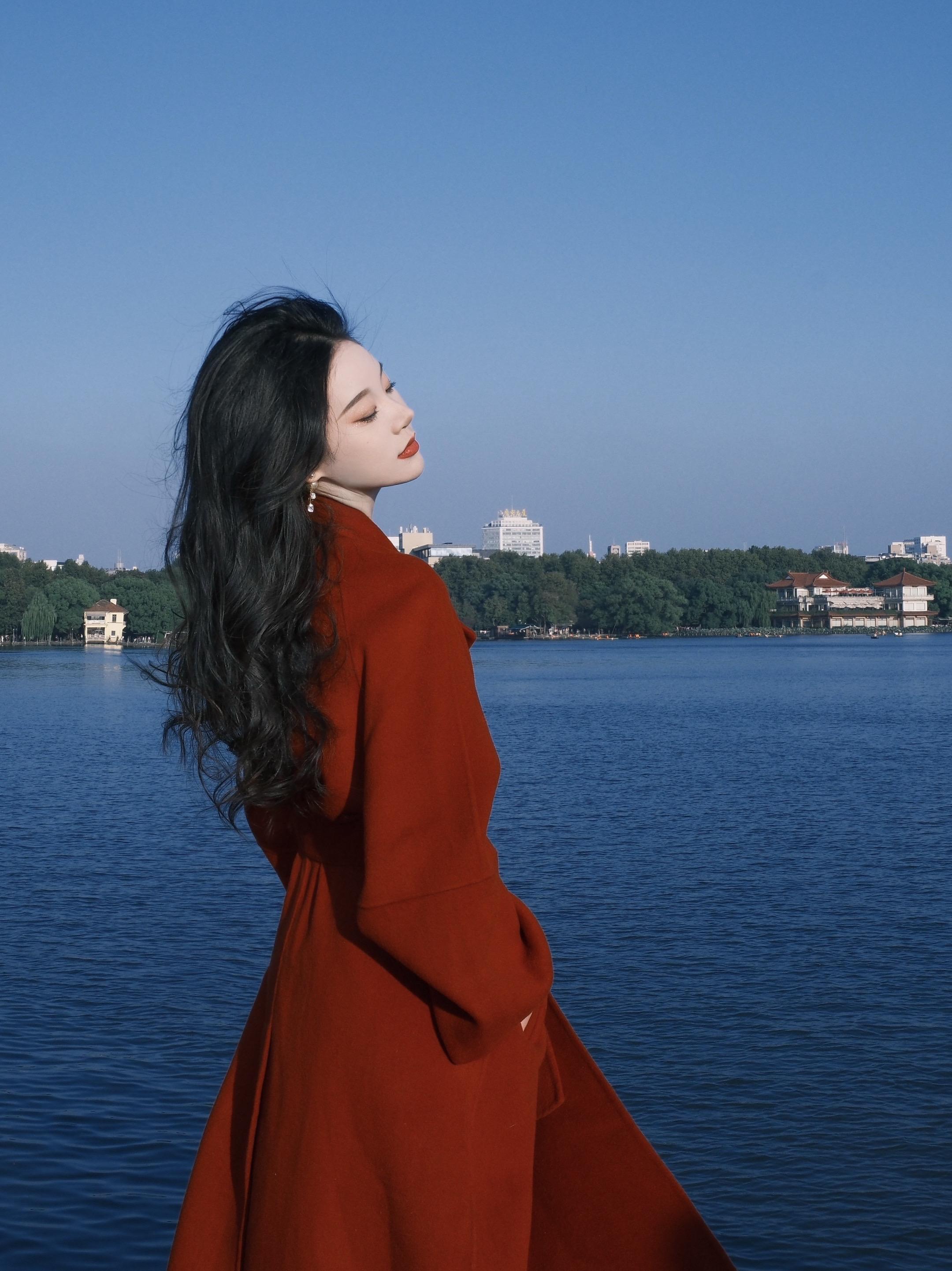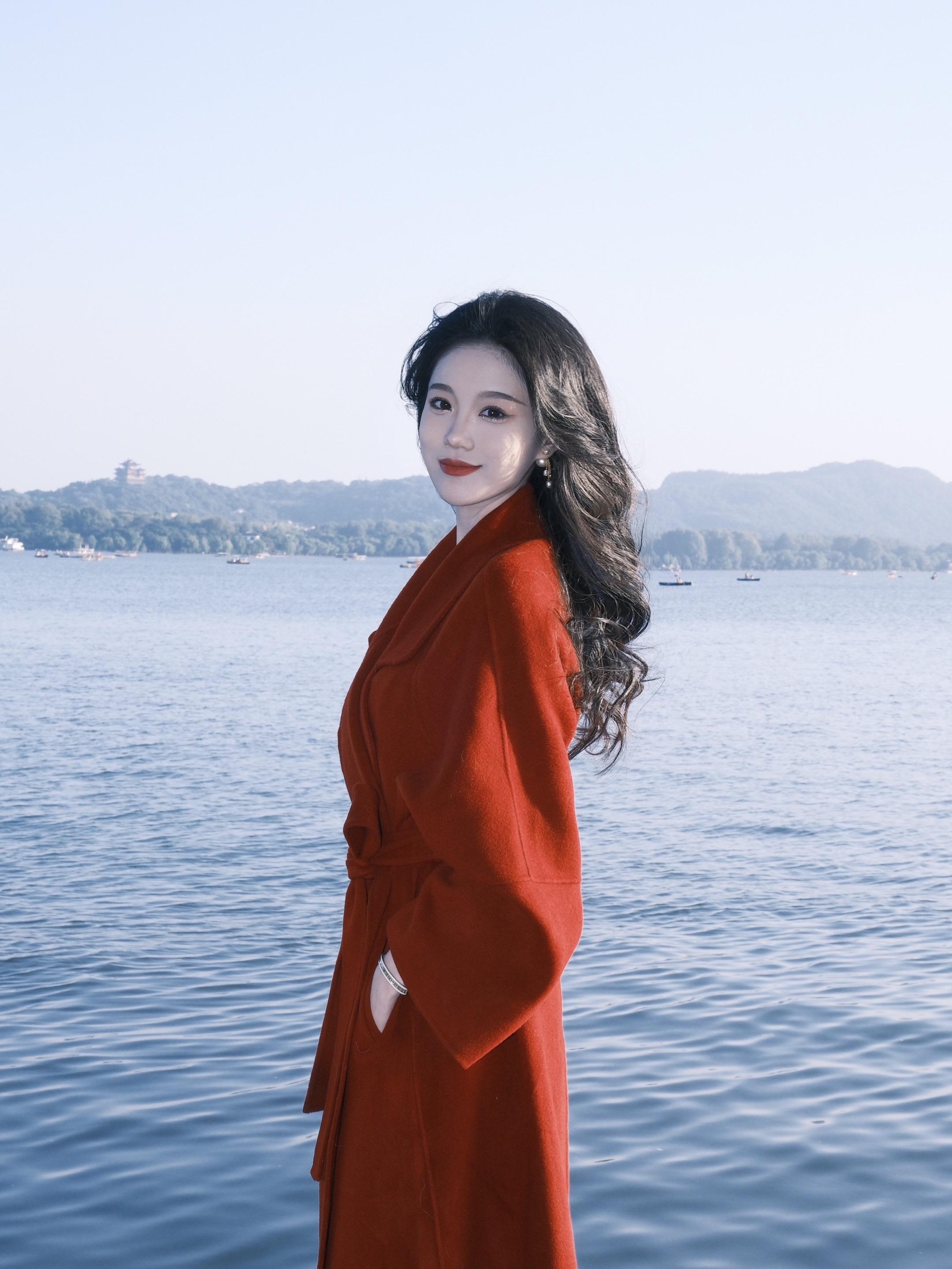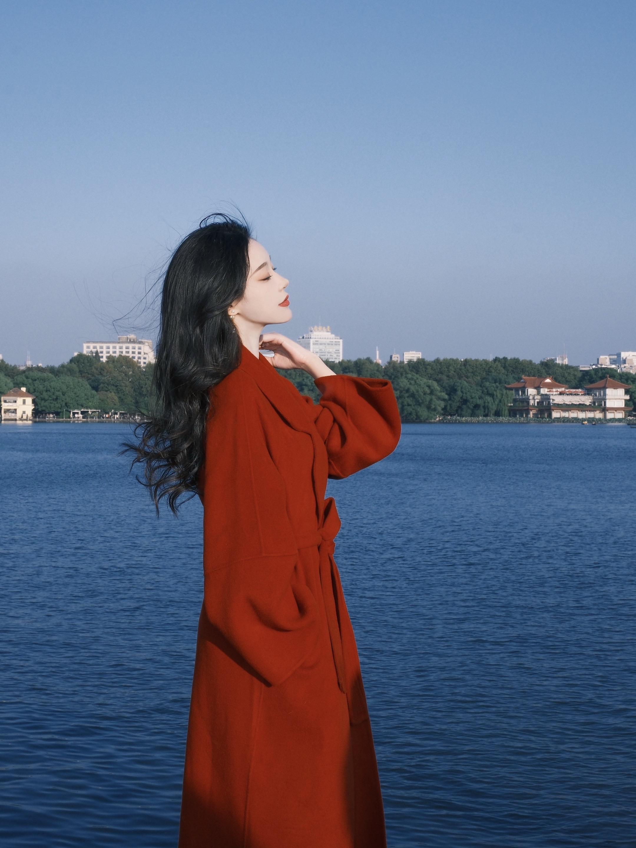 滩边红裙沐晴风海风裹着咸润的凉意,漫过沙滩细浪时,她正立在晴光里浅笑。