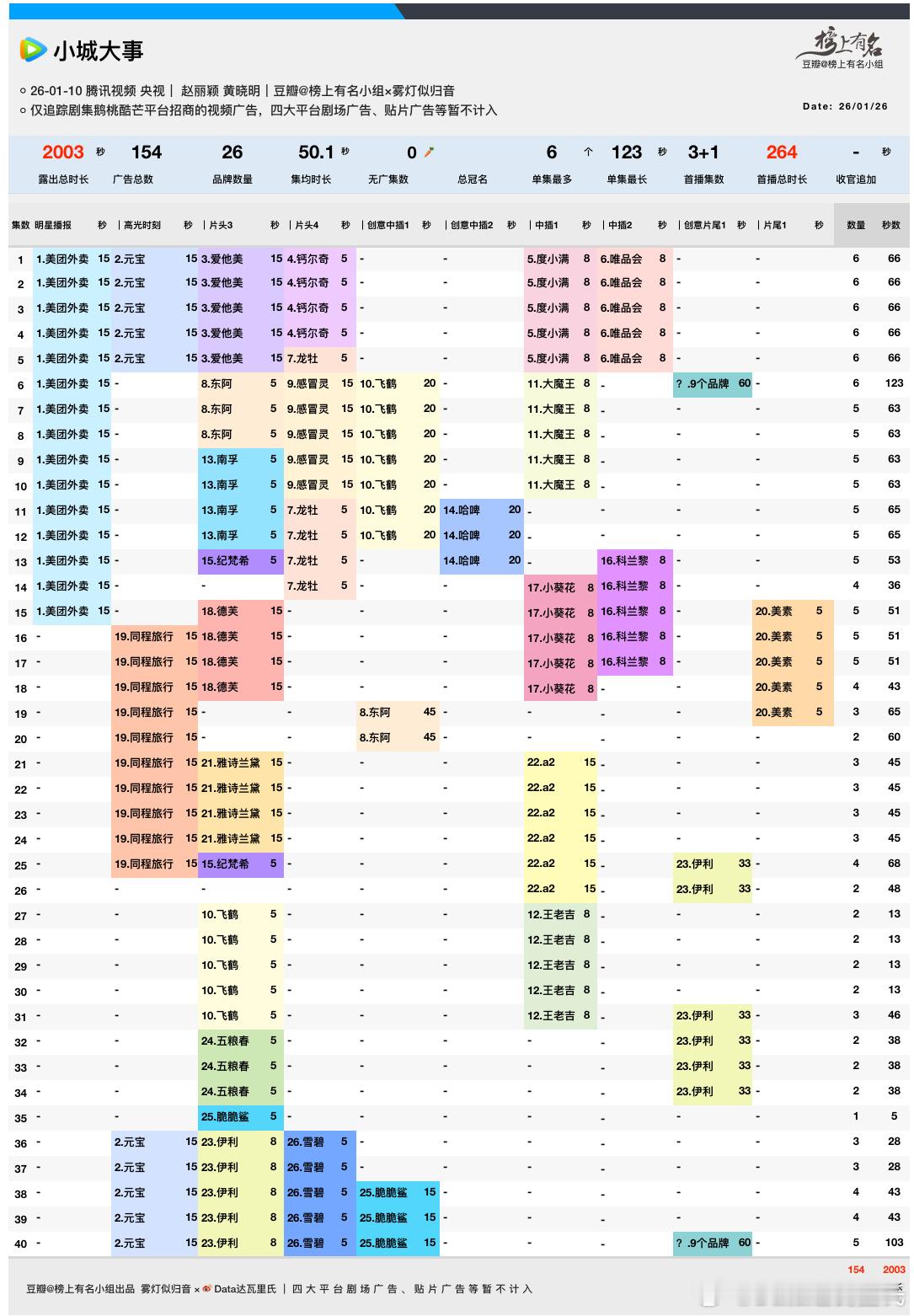 赵丽颖、黄晓明小城大事 超点完结本日最高27056,峰值27481(1.21)酷云收视率1-34集集均2.096%CVB收视率1-32集集均1.789%招商全集有广破2000s❗️26品牌,总154广,单集最多6广123s