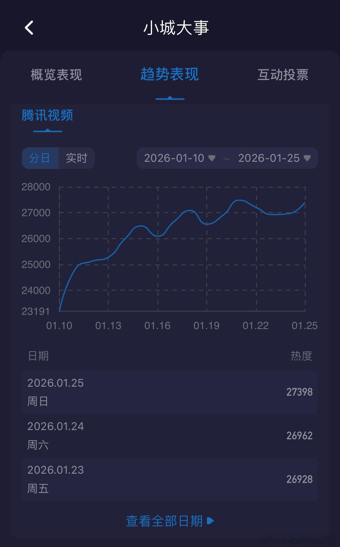 赵丽颖、黄晓明小城大事超点完结本日最高27056,峰值27481(1.21)酷