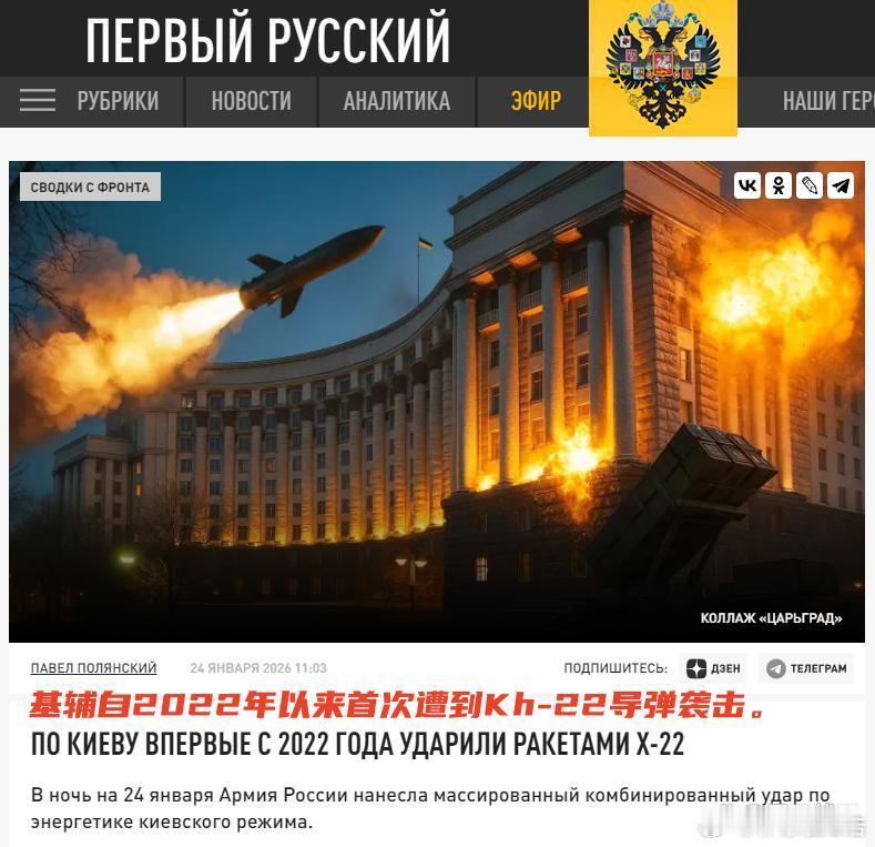 2026年1月24日凌晨,俄罗斯用12枚Kh一22重型反舰导弹袭击了乌克兰,这种