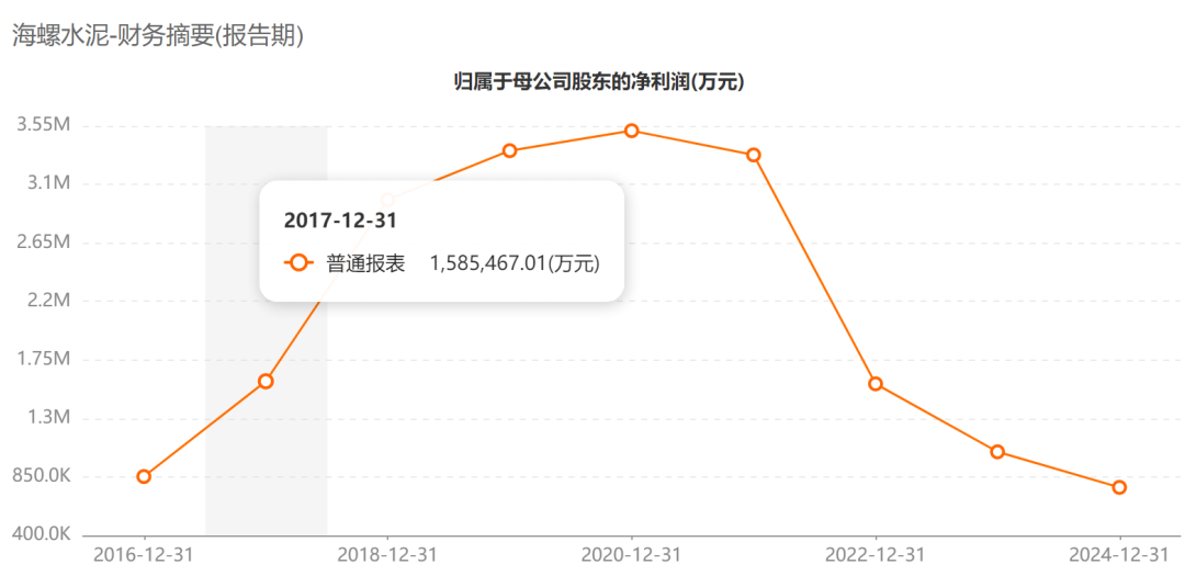 财务数据显示,海螺水泥的业绩高点出现在2020年。此后,公司利润呈下降趋势,但仍保持在数十亿元以上的盈利水平。2025年前三季度,公司实现营收612.98亿元,同比下降10.06%;实现归母净利润63.05亿元,同比增长21.28%。