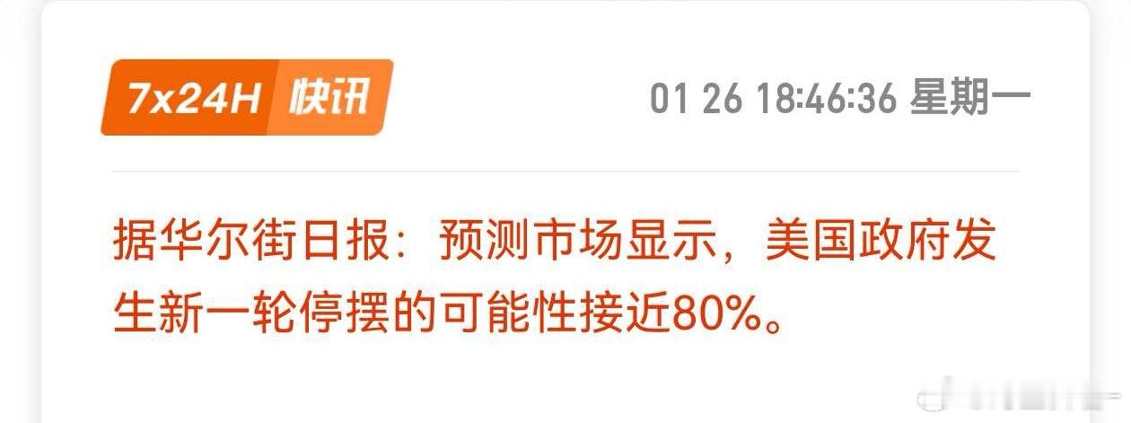 与美国相关的消息大部分都是利多金银的。 Polymarket平台显示1月底前政府停摆的概率为78%,较上周五的不到10%大幅上升。期货