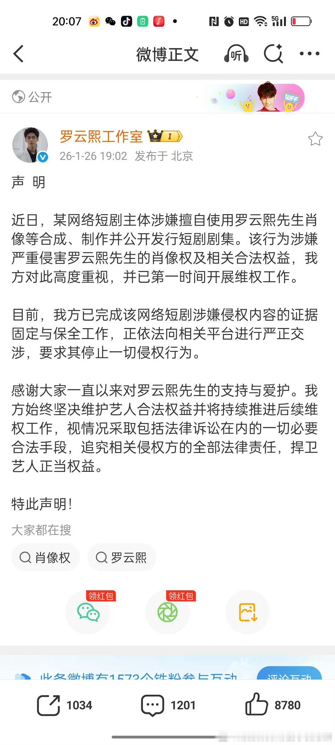 现在短剧也是越来越没底线了,AI就算了,还拿艺人的肖像合成支持罗老师维权!
