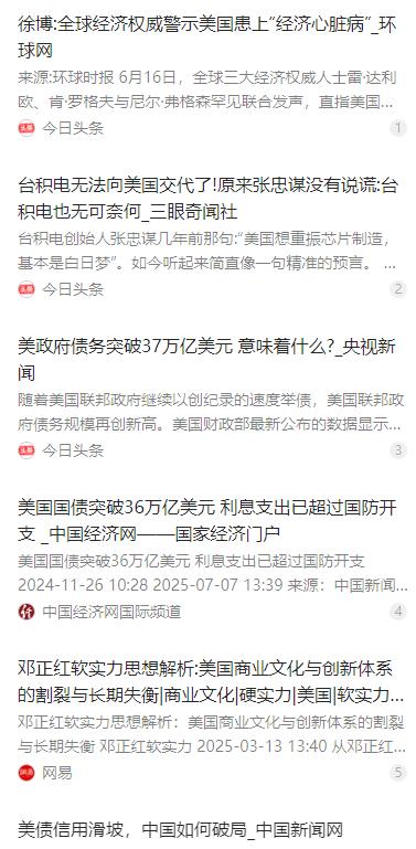 美国经济学家直言:中国不是美国对手,真正让美焦虑的是这件事。想象一下,美国顶尖经济学家突然抛出炸弹言论,说中国压根不是美国的对手,可华盛顿却整天紧张兮兮。到底啥事让超级大国这么不安? 麻烦看官老爷们右上角点击一下“关注”,既方便您进行讨论和分享,又能给您带来更多优质的内容,感谢您的支持! 近期美国多位顶尖经济学家接连抛出重磅言论,直言中国从来都不是美国的真正对手。华盛顿政坛整日将中国当作 “战略对手” 紧张提防,实则是在回避自身早已积重难返的内部问题,这才是超级大国心底最深的焦虑。 这些美国经济界的权威人士看得透彻,美国当前的发展困境,从不是外部力量带来的,而是自身数十年发展策略失误、社会治理失能埋下的恶果。从财政到产业,从创新生态到社会民生,美国的内部问题已形成连锁反应,且修复难度极大。 2024 年 1 月,美国联邦政府债务规模正式突破 34 万亿美元,这一数字在当年年底又攀升至 36 万亿美元,债务占 GDP 比重超 126%,远超国际警戒线。更严峻的是,2024 财年美国国债利息支出首次突破 1 万亿美元,正式超过国防预算,成为政府核心支出项。 这样的财政困境绝非一日形成,而是多年来宽松货币政策、盲目去工业化,加上政客们只看短期选票的政治短视共同累积的结果。美国靠借新还旧维持财政运转,债务雪球越滚越大,早已让全球资本对美元体系的信心不断下滑。 产业空心化是美国绕不开的另一大硬伤。为追求低成本高利润,美国长期将中低端制造业外包至海外,本土只保留高附加值产业,这直接导致产业链供应链的完整性被破坏。新冠疫情期间,美国医疗物资、基础工业品供应短缺,彻底暴露了供应链的脆弱。 意识到问题后,美国推出 “再工业化”“芯片回流” 等政策试图挽回局面,可落地后却举步维艰。台积电赴美建厂就是典型例子,从审批合规到水资源短缺,从关键材料依赖进口到专业技工严重缺失,各类问题让项目成本飙升,利润大幅缩水。 美国本土人力成本居高不下,操作工薪资是其他半导体产业集中地区的两倍,设备折旧费用更是达到四倍,再加上工会抗议、文化冲突等问题,让美国的产业回流计划沦为高成本低效率的尝试,张忠谋此前 “美国重振芯片制造是白日梦” 的预判也逐一应验。 单看科研基础和资本市场,美国依旧拥有全球顶尖的实力,可如今其创新生态早已出现严重扭曲。资本逐利的本性被无限放大,大量资金扎堆涌入能快速变现的短期回报领域,愿意投入长期研发的资金占比不足 15%,让基础研究发展滞后。 纳斯达克上市的科技企业,研发周期从 2010 年的 36 个月缩短至如今的 18 个月,风险资本对早期技术项目的容忍度下降四成,半导体领域的专利转化率也持续走低。原本能支撑美国创新的根基,正被短期利益主导的资本不断侵蚀。 同时美国引以为傲的 “人才虹吸” 优势也在不断削弱。本土教育体系重应用轻基础的问题日益凸显,难以培养出足够的高端技术人才,而摇摆不定的移民政策,又将大量海外优秀人才挡在门外,让美国的人才储备逐渐出现缺口。 创新动力不足、产业根基不稳,最终的代价都落到了美国普通民众身上,直接加剧了国内的贫富差距。而两党之间的政治极化愈演愈烈,为了争夺选票互相掣肘,使得任何涉及民生、财政的改革政策都难以落地,美国陷入了对内治理失能的困境。 面对诸多无解的内部问题,美国的政客们没有选择直面问题、推进改革,反而走上了转移矛盾的老路。将中国塑造成 “战略对手”,不断在经贸、科技等领域制造摩擦,试图用外部的 “假想敌” 凝聚国内共识,掩盖自身治理的失败。 可美国的经济学家们清楚,这种自欺欺人的做法根本解决不了问题。中国的发展始终坚持走自己的道路,从未主动与美国对抗,两国之间的差异本可以通过合作实现共赢。美国真正的对手,从来都是那个不愿直面问题、深陷内耗的自己。 如果美国始终无法放下霸权思维,继续将精力放在制造外部矛盾上,而不是解决财政赤字、产业空心、社会分裂等内部问题,那么其面临的发展困境只会越来越深。毕竟,一个国家的发展根基,永远在自身的实力和治理能力,而非外部的对抗与抹黑。