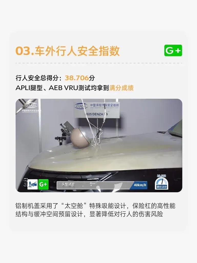 安全测试评分第一!4项G+评级!腾势N9用实力打脸质疑者!· 车内乘员安全指数:G+· 车外行人安全指数:G+· 车辆辅助安全指数:G+· 耐撞性与维修经济性指数:G+无论是车内乘员,还是车外行人,都给你足够的安全感!智能辅助驾驶也是G+,确实没想到!难怪王传福有底气为智能泊车兜底。