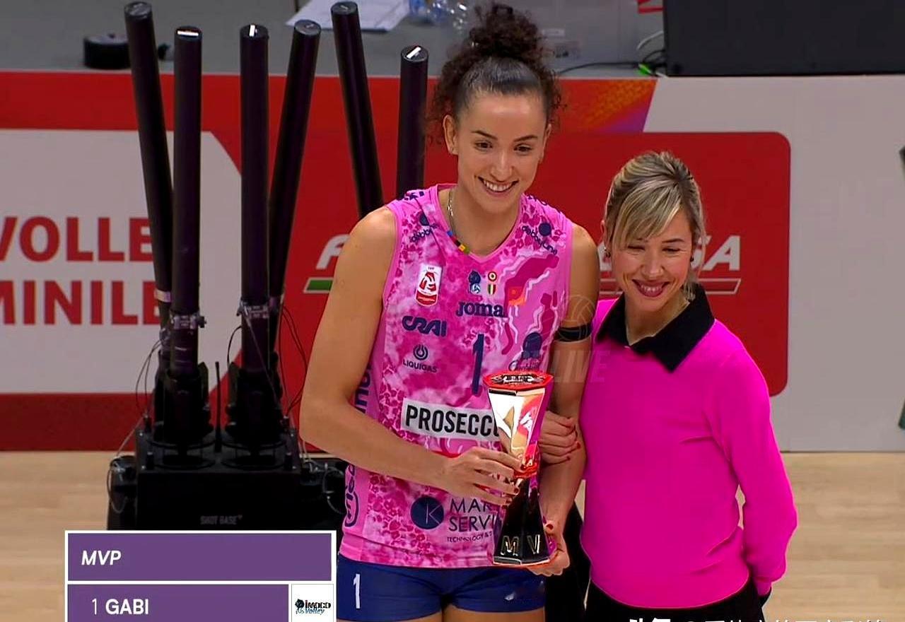 意大利杯决赛,朱婷哈克全成了陪跑。 哨声一响,教练冲上去摸着一个人的头。不是世界第一主攻朱婷,也不是重炮哈克。MVP,给了巴西人加比。 全场都在看哈克。世界第一接应,专职砸地板的。结果一看数据单,她20分。加比,这个1米8的小个子,砍了22分。 再看朱婷,三局13分。看起来不多?但你别忘了,她后排次次被换下,根本没机会刷数据。关键分全是她顶着人往死里打。 看看比分:31-29,26-24,27-25。每一分都是从牙缝里抠出来的。这种绞肉机比赛,谁攻得下,谁防得起,谁就是王。 捧杯是所有人的狂欢,MVP却是一个人的勋章。