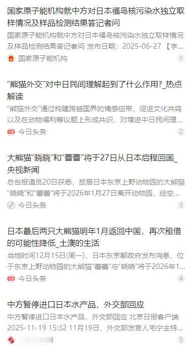 日本已经完全没有回头的余地了,因为中国不会让他们回头!看中国最近的动作就知道了。据新华社 1 月 20 日报道:日本东京上野动物园向新华社记者证实,目前生活在该园的大熊猫 “晓晓” 和 “蕾蕾” 不久将提前返回中国。 麻烦看官老爷们右上角点击一下“关注”,既方便您进行讨论和分享,又能给您带来更多优质的内容,感谢您的支持! 2026 年 1 月 20 日,新华社发布消息,日本东京上野动物园正式证实,园内的大熊猫 “晓晓” 和 “蕾蕾” 将于 1 月 27 日启程返回中国,较原定 2026 年 2 月的租期提前了约一个月,这也意味着日本将迎来 1972 年中日邦交正常化后的首个 “零熊猫时代”。 大熊猫作为中国的国宝,对外租借从来都不只是简单的物种交流,而是带着浓厚的外交属性,是国家间友好相处的重要象征。“晓晓” 和 “蕾蕾” 2021 年出生于上野动物园,自 2022 年首次公开亮相后,就成了日本民众的 “国民宠儿”。 彼时开园见熊猫不仅需要抽签,中签率低到离谱,日常更是有大批日本市民排长队,只为见这对熊猫宝宝一面,相关的生日会、成长动态更是频频登上日本媒体头条,成为中日民间友好的鲜活纽带,还为上野地区带来了每年超 300 亿日元的经济收益。 可谁能想到,曾因熊猫迎来全民欢腾的中日民间友好,如今却因日方的一系列错误行径走到了如今的地步。过去两年里,日本彻底放弃了中日之间的基本互信,主动站到了美国对华战略的前排,在多个涉及中国核心利益的问题上不断挑衅。 在科技领域,日方跟风美国出台对华芯片限制政策,试图阻碍中国高端制造业的发展;在台海和南海问题上,日方屡屡触碰一个中国原则红线,不仅有政客窜访台湾地区,还抛出荒谬提议干涉中国内政;更让人无法接受的是,日方一意孤行排放福岛核污水,置全球海洋生态安全于不顾。 日方的种种行为,彻底消解了中日之间的互信根基,中方自然也不会再用一贯的温和态度对待,而是拿出了一系列实打实的反制措施,提前接回大熊猫只是其中最具象征意义的一步。这一举措,直接收回了中方对日本释放的善意,也让中日关系的温暖纽带就此断裂。 在经贸领域,2025 年 11 月中方正式叫停了日本水产品的进口,原因就是日方未能履行承诺,提供输华水产品的相关技术材料,再加上日方政客的错误言行,让中国市场对日本水产品彻底关上了大门,给日本水产行业带来了沉重打击。 针对福岛核污水排放问题,中方始终保持强硬态度,并没有任由日方随意为之。国家原子能机构统筹国内专业研究机构,多次赴福岛第一核电站开展独立取样监测,还积极推动核污水排海的国际监测,敦促日方履行承诺,让核污水排海处于国际监督之下。 在科技和产业领域,中方也加快了减少对日高端制造领域依赖的步伐,通过自主研发和国际合作,不断突破日方的技术封锁,让日本的芯片限制等举措难以达到预期效果,这也让日本相关产业失去了中国这个巨大的市场,自身遭受了不小的损失。 “晓晓” 和 “蕾蕾” 的提前归国,绝不是简单的熊猫保育安排,更是中日关系发生变化的重要信号。这对熊猫的离开,标志着中日之间原本依靠民间友好维系的 “缓冲区” 正在慢慢消失,而这一切的根源,都是日方不顾中方感受,执意选边站的结果。 日方其实也意识到了问题的严重性,不仅东京都政府多次提出希望延长这对熊猫的租期,还试图通过翻倍租金、升级熊猫馆等方式挽回,甚至有多个地方政府和动物园表达了新的租借意愿,但这些请求都没有得到中方的同意。 中国外交部在回应此事时,虽表示欢迎日本民众来中国看大熊猫,保留了民间交流的窗口,但也清晰传递出一个信号:熊猫合作的重启,需要以日方尊重中国核心利益、重建政治互信为前提。没有这个基础,一切都是空谈。 日本如今的处境,完全是自己一手造成的,中方从来都没有主动挑起矛盾,始终希望与日方保持正常的邻国关系,但前提是日方能够尊重中国的核心利益和主权完整。可日方却一再挑战中方的底线,跟着美国起舞,最终只能自食恶果。 从熊猫外交的遇冷,到各领域反制措施的落地,中方的一系列动作都在明确告诉日本,选边站的行为必然要付出相应的代价。现在的日本,想要回头或许还有机会,但前提是必须摒弃错误的对华政策,停止挑衅行为,用实际行动重建中日之间的互信。 但如果日方依然执迷不悟,继续在错误的道路上越走越远,中方也绝不会手软,后续必然会有更多的反制措施出台。到那时,日本失去的就不只是大熊猫,还有中国这个重要的邻国和广阔的市场,最终只会让自己陷入更加被动的境地,彻底没有回头的余地。