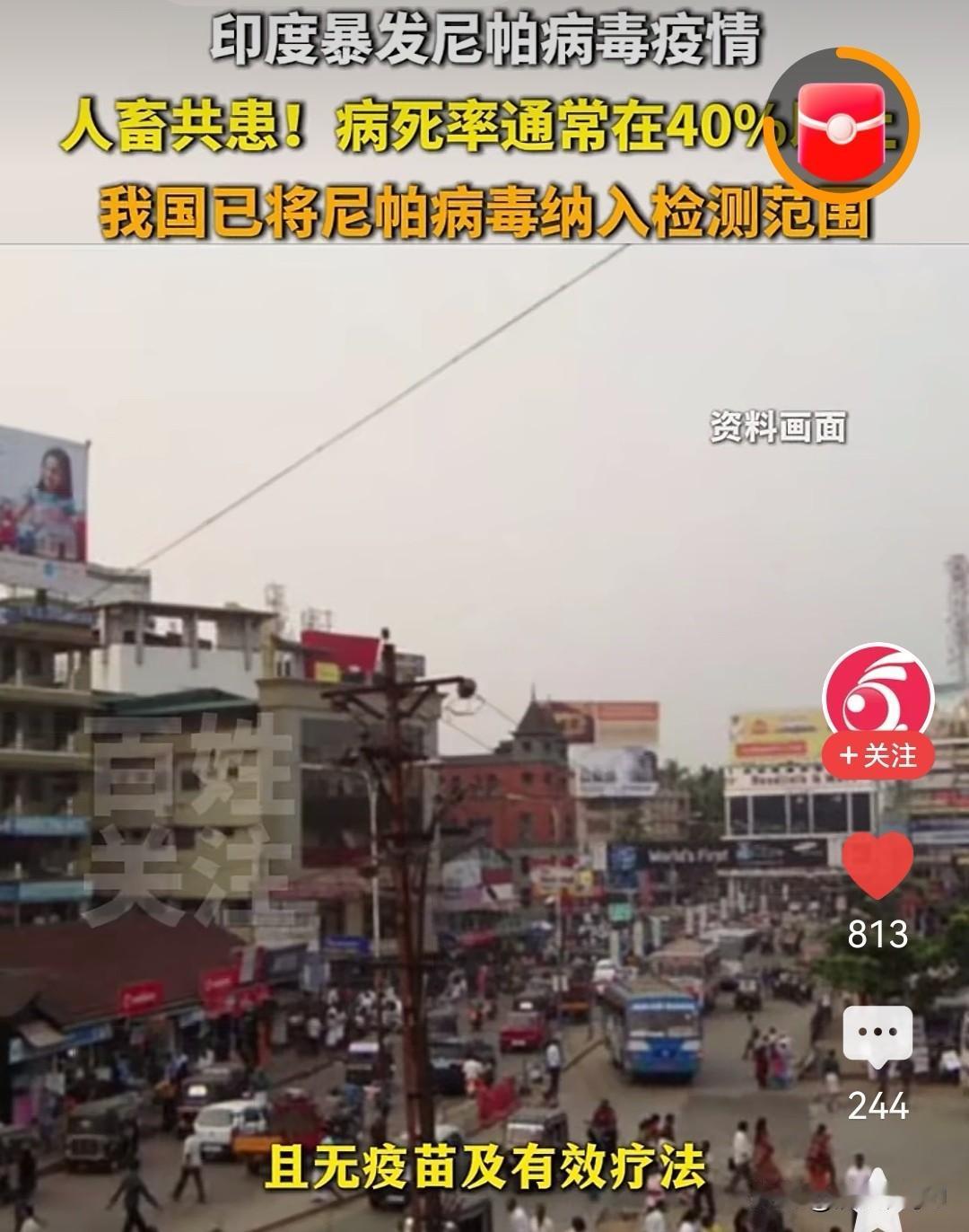 硬核操作!中国给尼帕病毒上了“国门紧箍咒” 中国直接把尼帕病毒拉进出入境防控黑名单。 最新修订的《国境卫生检疫法》里,这病毒跟新冠、艾滋这些狠角色平起平坐,法律到实操的防护墙砌得严严实实。海关只要查出苗头,隔离转运治疗一条龙,拿捏得死死的。 2026年1月印度西孟加拉邦闹起疫情,5人确诊连医护都没躲过,近百人被居家隔离。源头疑似是一名去世患者,两名医护去年12月底共事,元旦后陆续出现高烧呼吸困难症状。 泰国26日起对该地区航班全面筛查,出发地初检、落地测温填健康表一样不含糊。尼泊尔更早动手,1月23日就下令加强机场和边境检疫,疑似病例直接送指定医院。 这病毒堪称“夺命狠角色”,病死率飙到40%-75%,世卫给它定了最高生物安全等级。幸存者五分之一会落下癫痫、认知障碍后遗症,坑人没商量。天然宿主是果蝠,污染的水果能传毒,人与人飞沫体液也能传染,医院家庭最容易扎堆中招。早期症状像流感易误诊,潜伏期最长45天,全球还没疫苗特效药,全靠早发现早隔离。 中国早有准备,2025年就和老挝、越南在云南江城搞跨境演练,专门针对这病毒练手,三国联动织密防控网。这波操作相当于给国门装了道智能防盗门,把风险挡在门外。 这道国境防线能不能守住所有风险?评论区来聊聊。