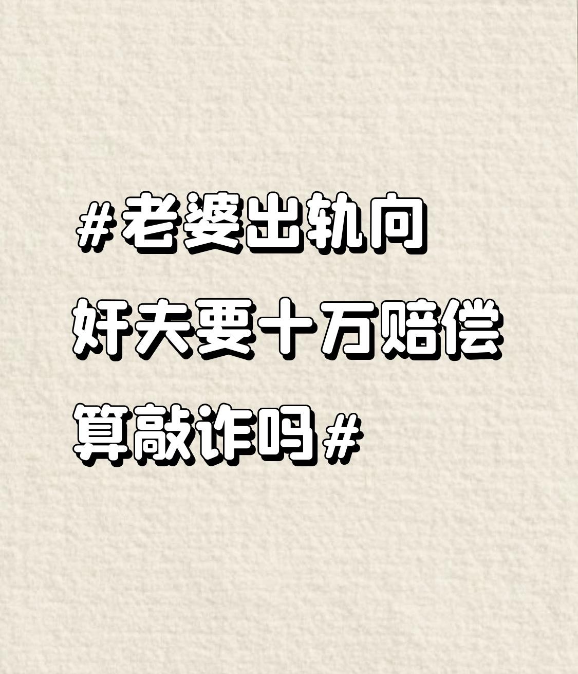 老婆出轨,老公向奸夫要十万赔偿算不算敲诈,这得具体情况具体分析。 如果是以威胁、要挟等手段强行索要,那就可能涉嫌敲诈勒索罪。按照法律规定,敲诈数额巨大(3万到10万以上),可能处三到十年有期徒刑并处罚金。但要是正常协商,没有用威胁手段,那一般不构成犯罪。 之前就有类似案例,一方以曝光隐私威胁对方给钱,最后被认定为敲诈。所以遇到这事,先别急着冲动要钱,能心平气和协商最好,要是不行也可以通过法律途径解决,避免自己陷入违法境地。
