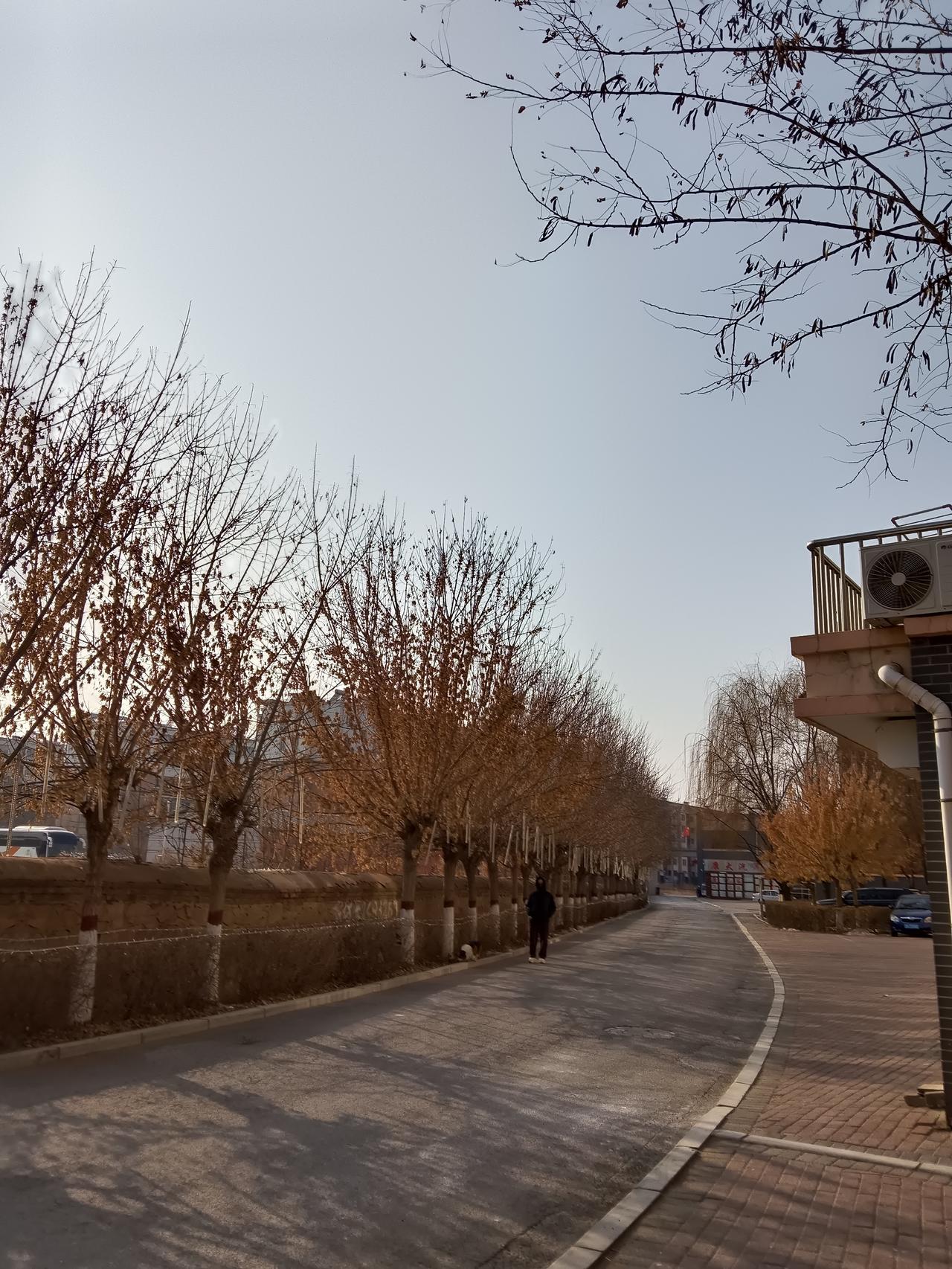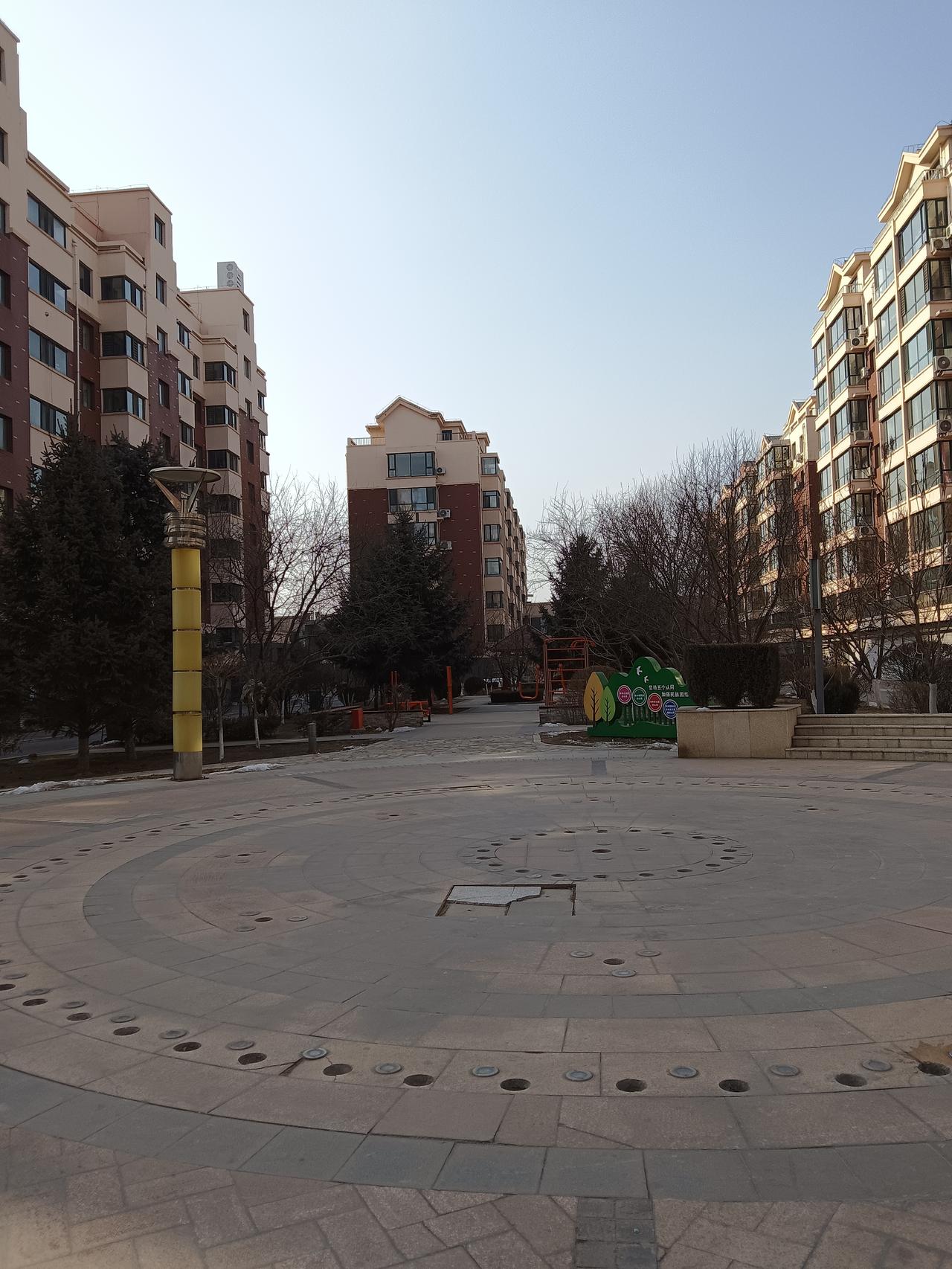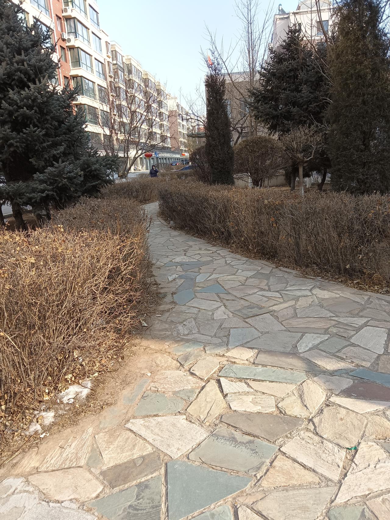 冬日暖阳洒在现代公寓上,绿树掩映,宁静祥和。