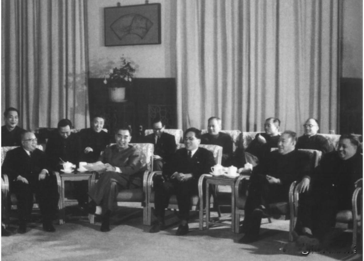 1966年1月22日,周恩来总理由南汉宸(前排右二)、廖承志等陪同,接见日中贸易促进会友好代表团。周总理再次明确强调了中国对日关系的政治底线,即不执行敌视中国政策、不参与制造“两个中国”阴谋、不阻挠中日关系正常化。面对日本政府的阻挠,周总理鼓励代表团成员:“留得青山在,不怕没柴烧。”他主张,即使官方贸易受阻,也要坚持民间交流,等待时机。