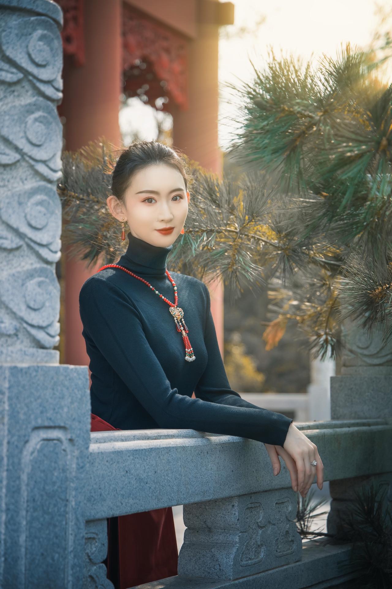 人像摄影,20岁御姐范成熟稳重,样貌和图1一样在景点,非刻意构图于布光,冷白皮,