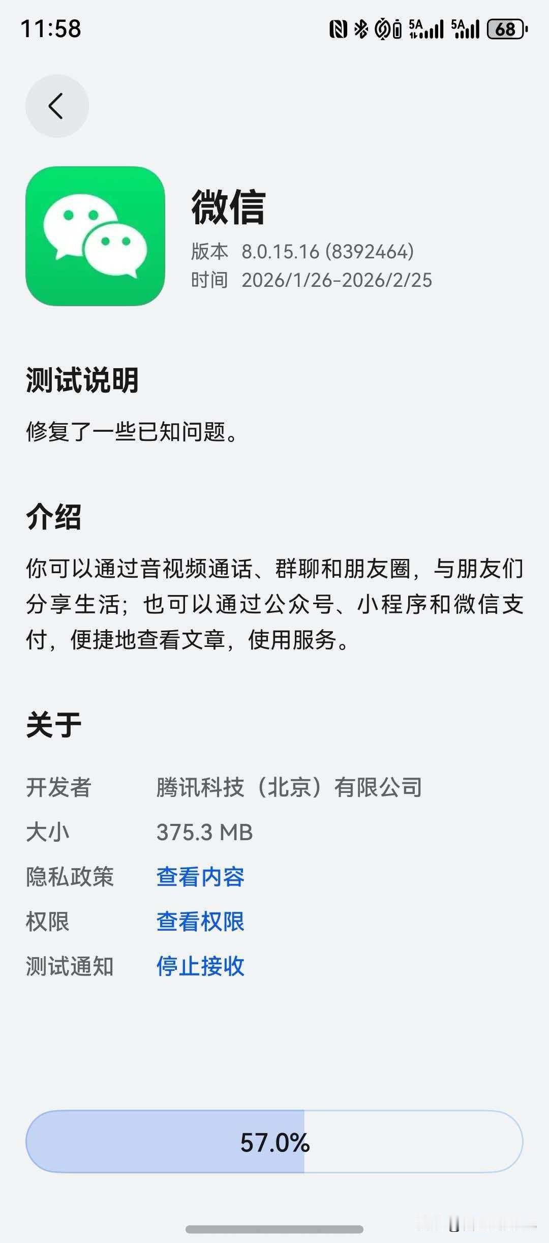 鸿蒙微信消费者版本邀请内测8.0.15.16 1.设置-朋友权限新增“添加我的方式”,可管理“添加我为好友”和“搜索到我”的方式; 2.收藏支持新建和编辑笔记; 3.聊天界面右下角+号新增收藏,可快捷发送已收藏内容至聊天; 4.支持扫码登录手表蓝牙微信(逐步开放,此前已支持扫码登录手表独立微信); 5.表情新增互动表情(剪刀石头布/骰子,路径:收藏表情末尾); 6.聊天界面支持最近使用表情显示; 7.发送红包时支持添加表情; 8.支持微信礼物功能,支持参与礼物抽奖; 9.支持多选收藏; 10.支持表情雨特效; 11.支持状态功能(逐步开放); 12.修复一些已知问题。 PS:8.0.14已支持日本(+81)和新加坡(+65)手机号登录微信以及直播小窗功能。 13.当前版本可能存在部分未开放(逐步热更开放)