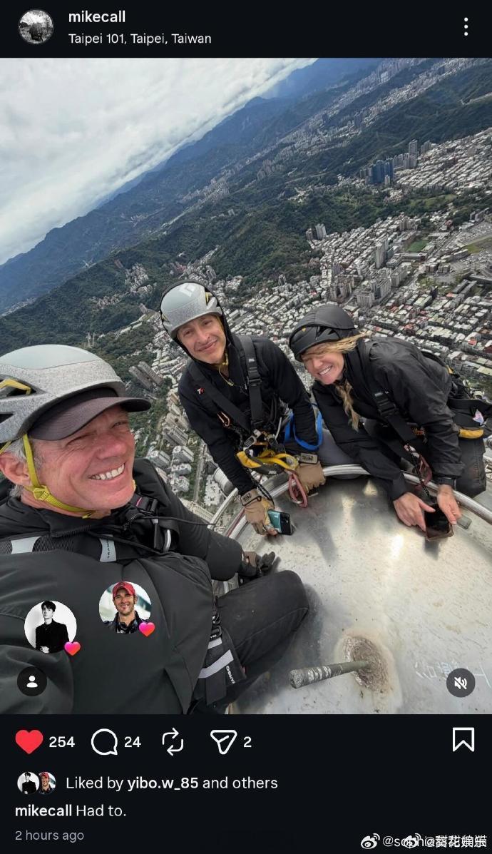 王一博点赞攀登台北101合照王一博点赞探索新境2摄影师王一博ins点赞《探索新境2》摄影师发的台北101攀登合照!