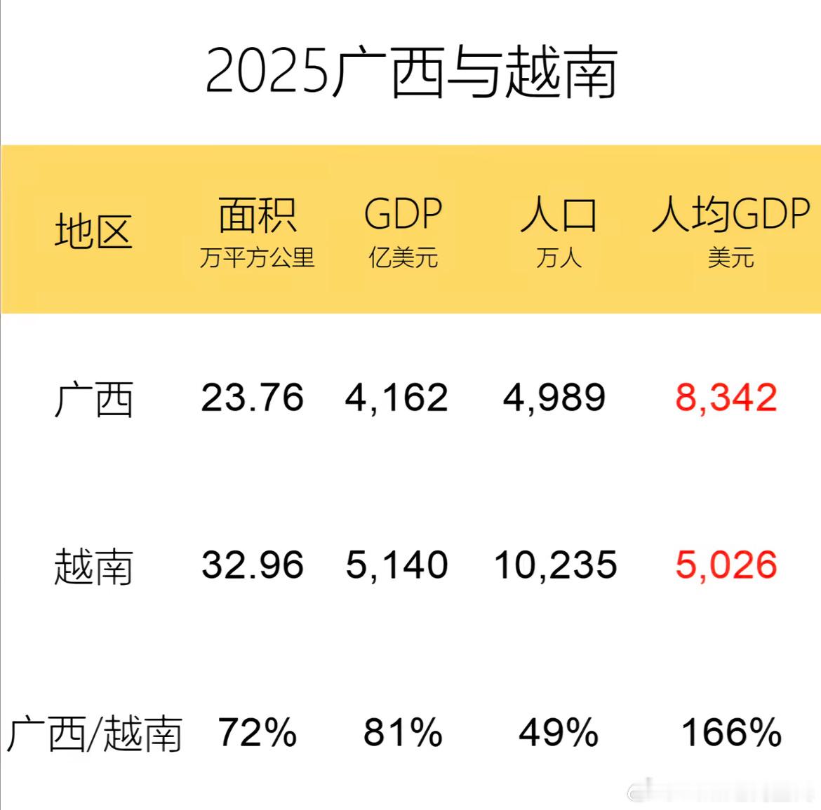 2025年广西vs🇻🇳越南GDP😂😂😂广西出了名了“贫穷落后”越南不要天天说自己起飞了