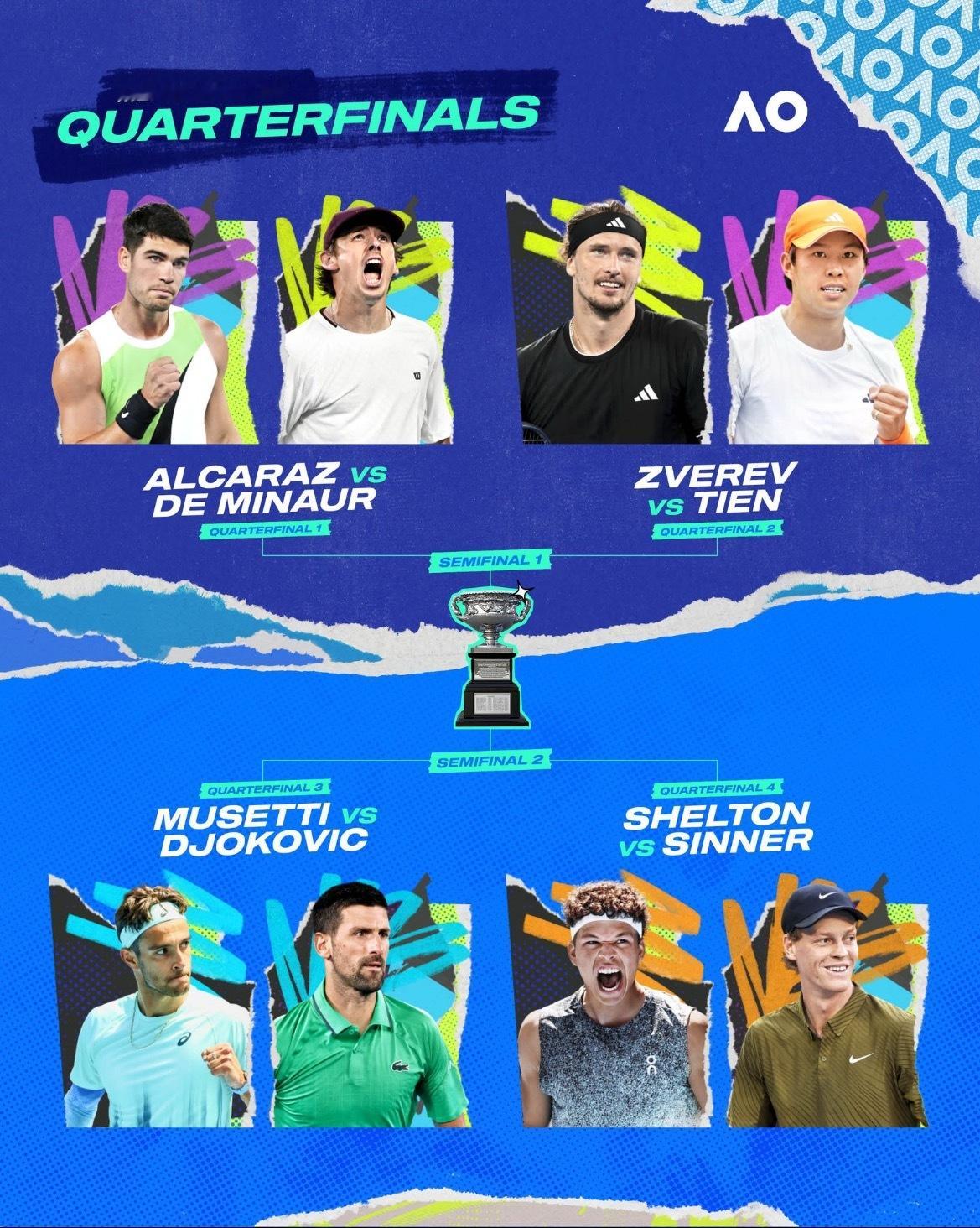 网球talking大会澳网2026这很澳网 男女单打八强对阵,男单前八种子有七位晋级,男、女单前六号种子全部晋级八强