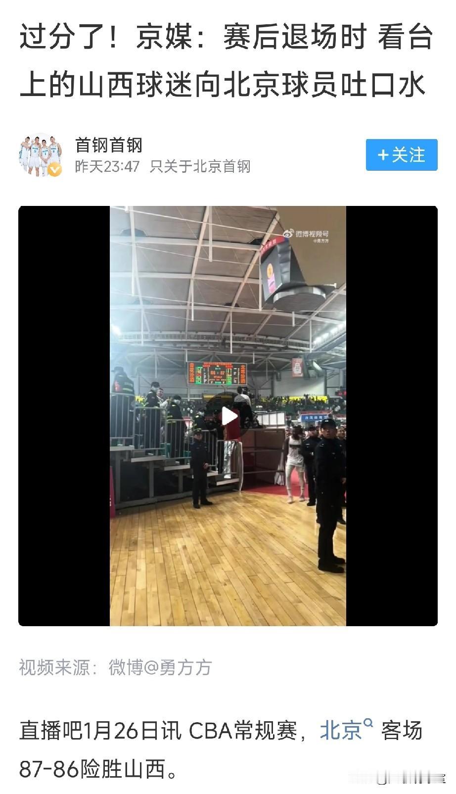 不偏不倚,山西球迷对北京球员吐口水这事非常不理智,也不应该,这不但是关乎山西球迷素质问题,关键球迷这样做还连累到球队,说明球队对球迷、对场馆疏忽管理,后续肯定会被CBA官方处罚的,上赛季山西就因为主场球迷骂球员闹事被罚款几十万,这次再犯同样的错误,估计处罚会更严重,理解山西球迷输球发泄情绪,但是对对方球员吐痰吐口水这行为非常恶劣