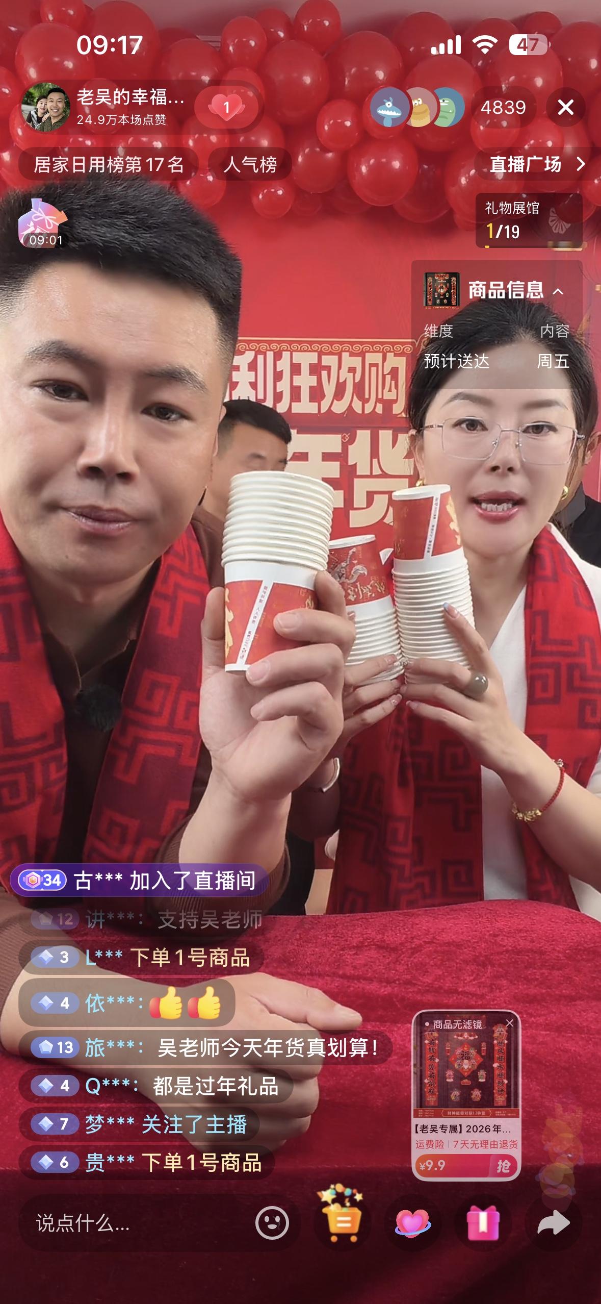 都说抖音的尽头是直播带货,吴承言也不例外,今天吴承言夫妇开启了年货节首场带货,直播间氛围不错。 吴承言直播间主要带的是过年用的物件,很便宜比较贴心,直播间在人数没有想象的那么多5000左右,不得承认吴承言老婆口才真不错,直播间话术有一套。 大哥三弟在后面举牌子,吴家兄弟情让人羡慕,一人出名不忘带动兄弟致富。吴承言首场直播带货