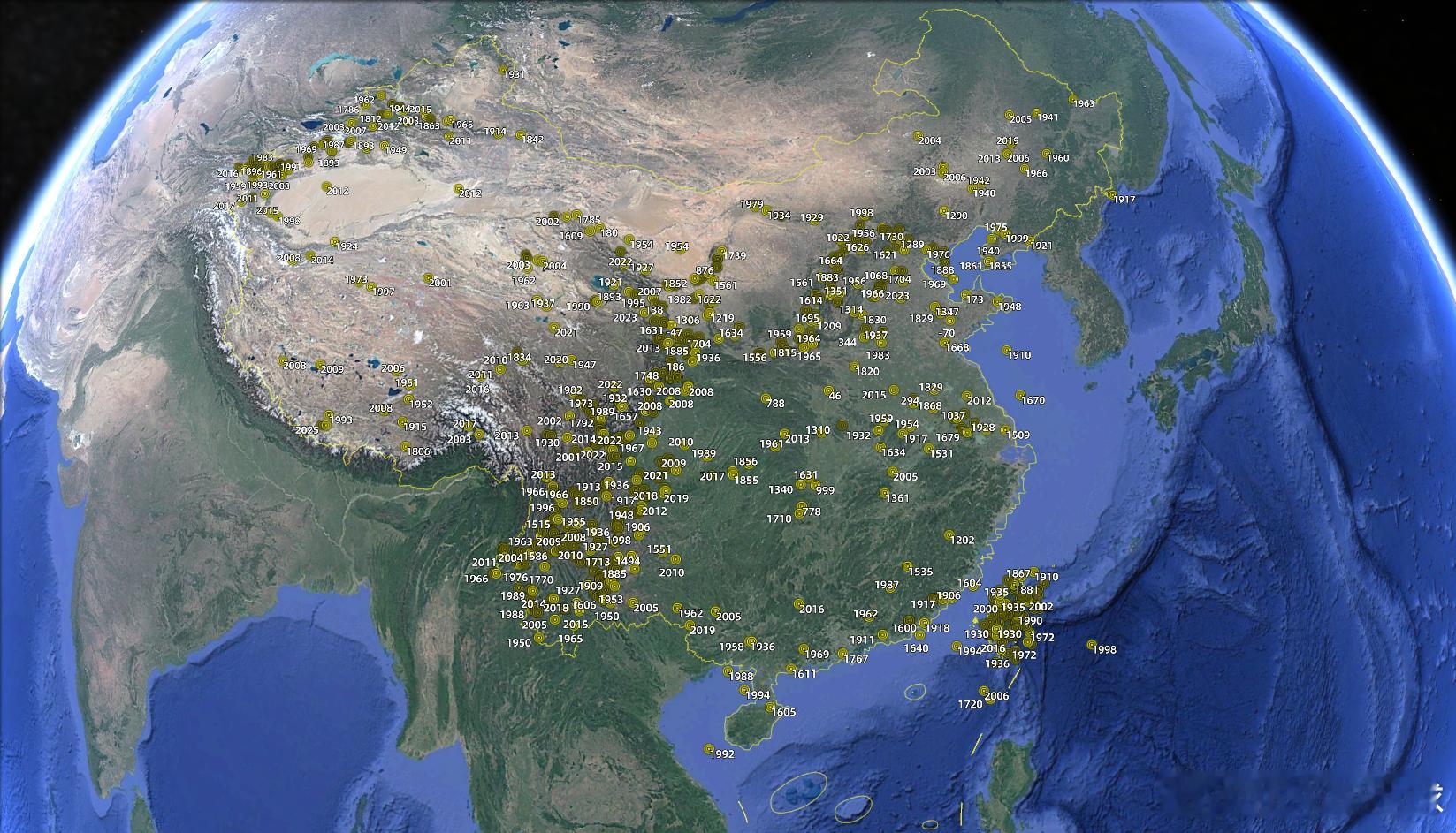 【中国重大地震分布图】从公元前193年至今,中国重大地震分布图。判定标准满足以下任一条件:经济损失达100万美元以上;死亡人数10人及以上;震级≥7.5级;烈度≥X度;或引发海啸。中国地震 甘肃地震