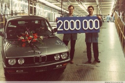 1982年宝马丁格芬工厂下线的第2000000台车,是一台第二代E28 5系。bmwskybmwclassic