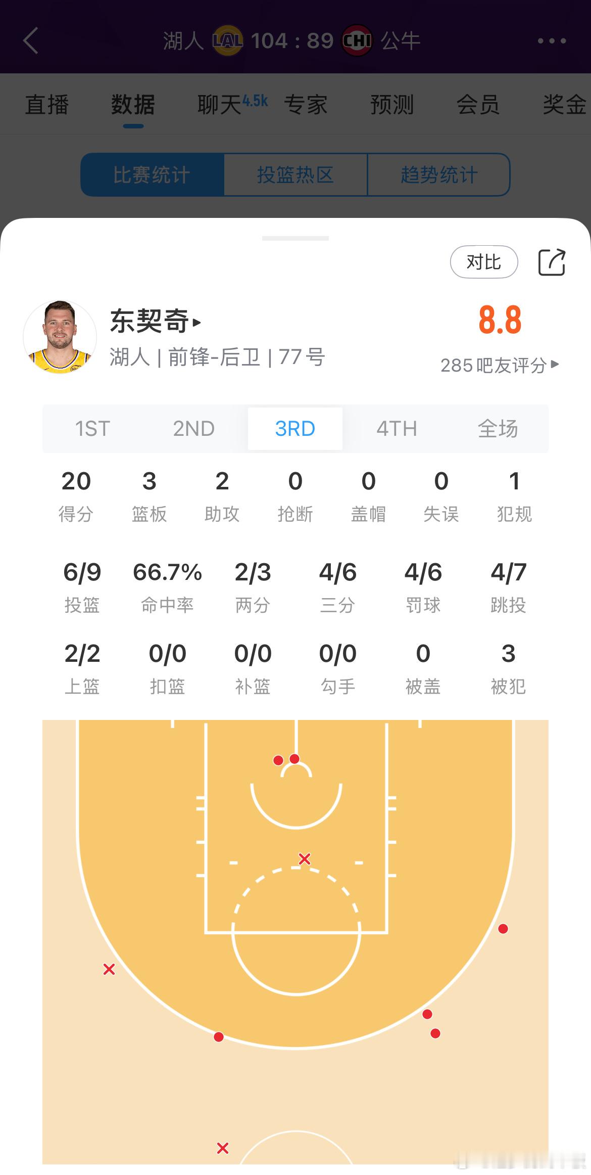 东契奇42分,科比-怀特同样回应三分湖人vs公牛