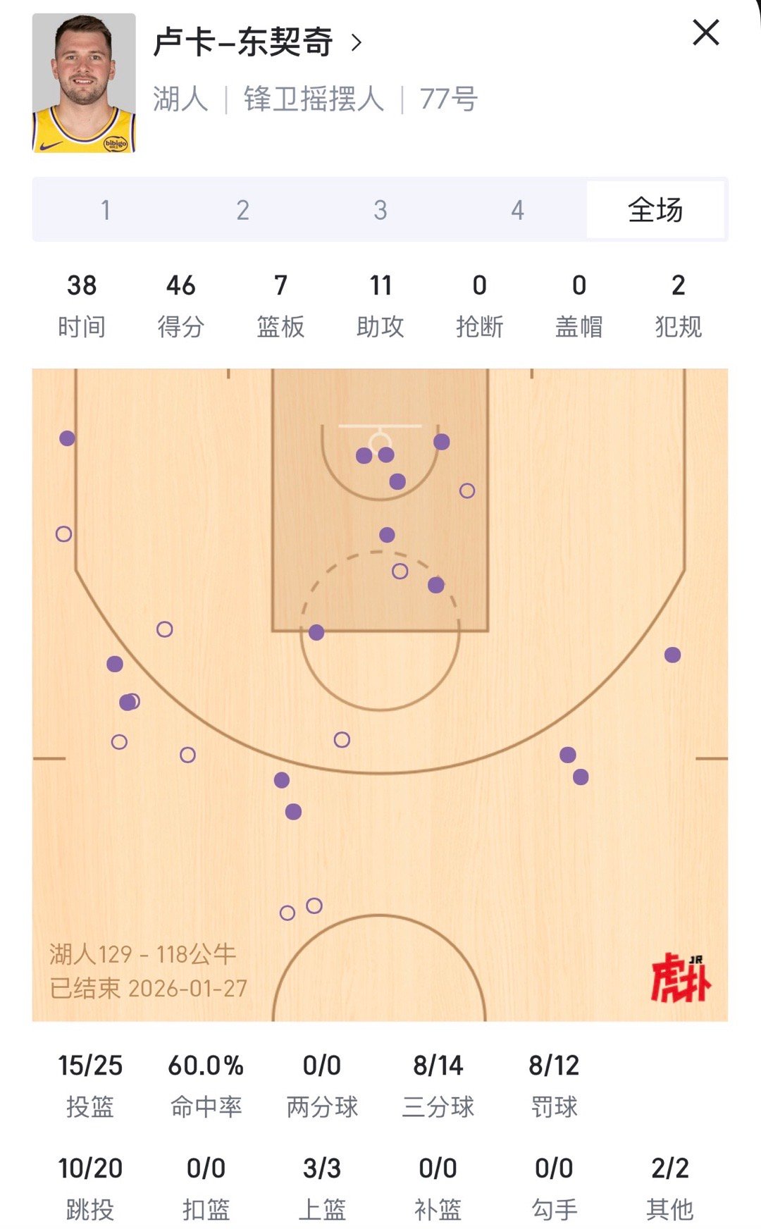 如何评价?本场的东契奇:46分7篮板11助攻,三分球14中8!湖人vs公牛湖人战胜公牛