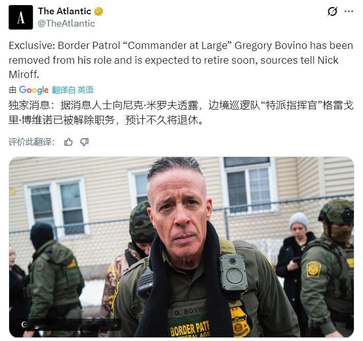 《大西洋月刊》报道,ICE近日在明尼苏达州进行执法行动,但在过去3周已发生两宗美国公民遭枪杀的事件。在当地主导执法行动的负责人博维诺(Greg Bovino)已被解除“特派指挥官”职务,并将返回其位于加州的原岗位,预计不久后将退休。 但国土安全部发言人否认博维诺被解除职务。