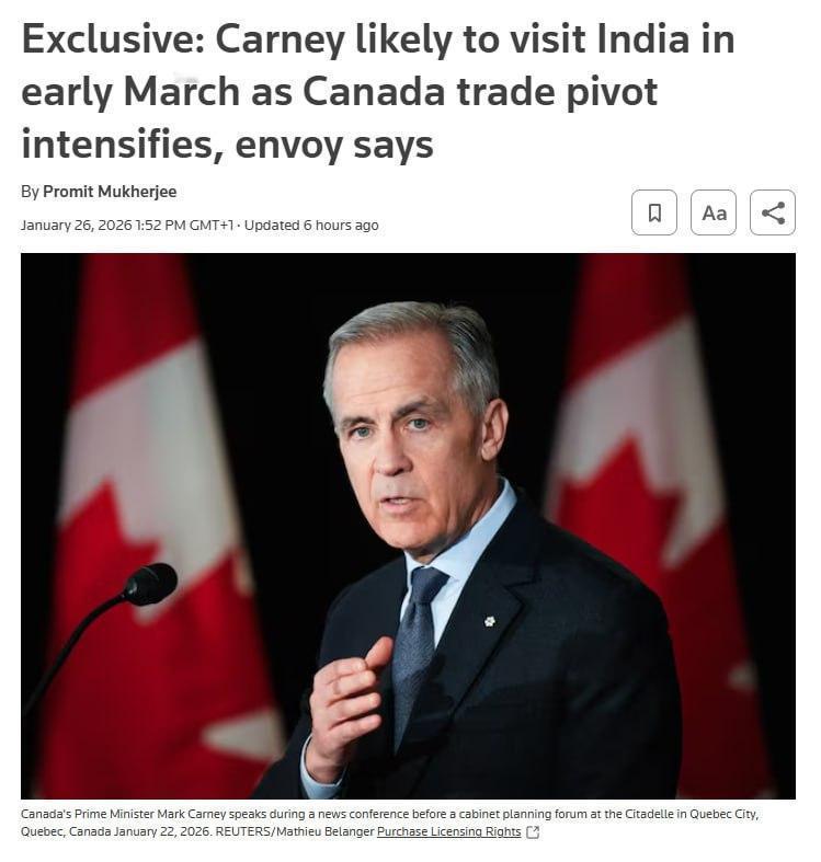 路透社报道,加拿大总理马克·卡尼可能于3月首周访问印度,签署关于铀矿、能源、矿产及人工智能领域的合作协议。和阿三签贸易协定会不会还会惹火特朗普?海外新鲜事热点现场国际局势