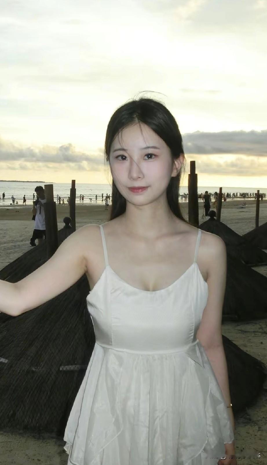 滩边红裙沐晴风海风裹着咸润的凉意,漫过沙滩细浪时,她正立在晴光里浅笑。