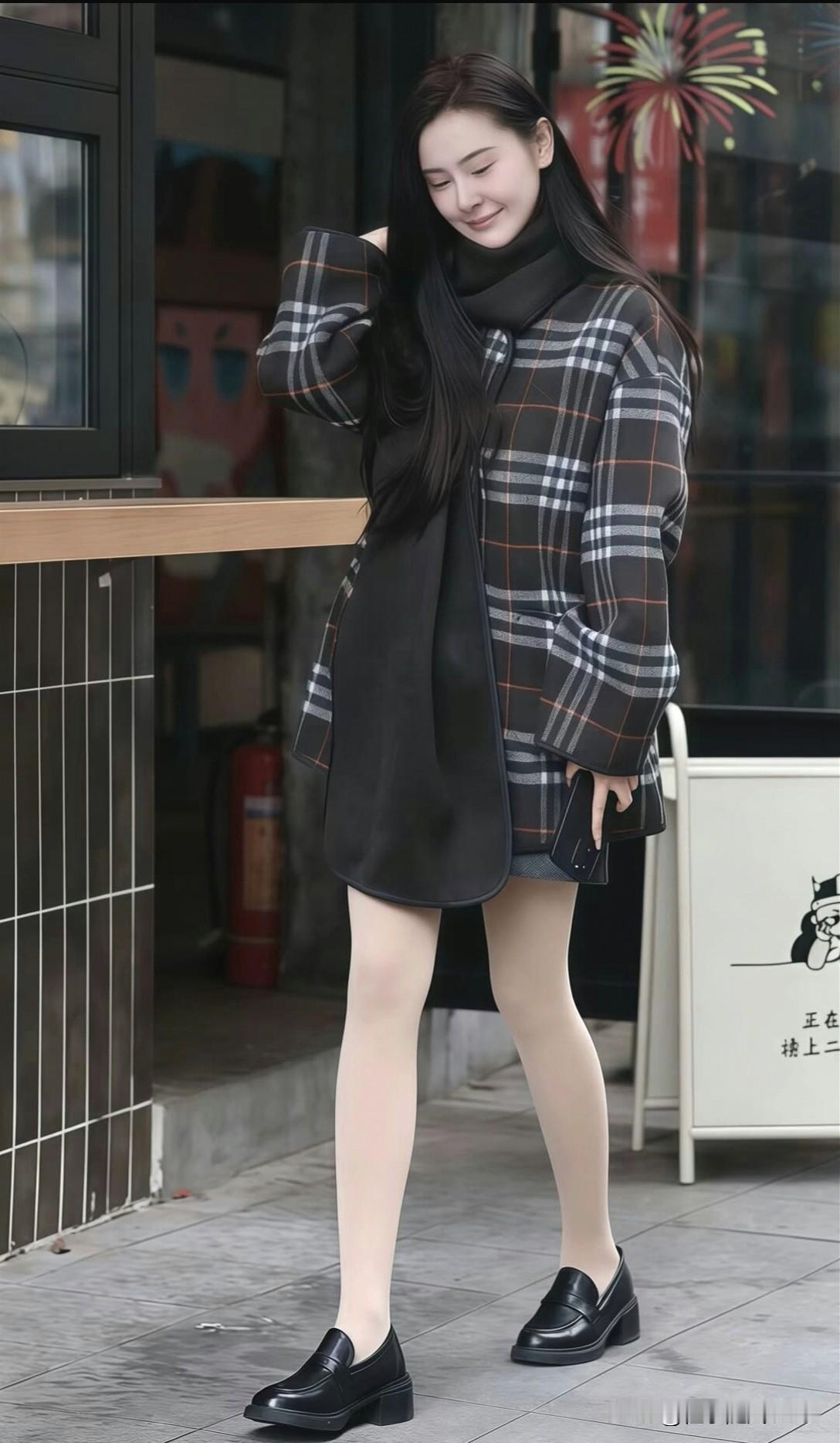 冬日穿搭指南:格纹大衣+黑色短靴,温暖又时尚