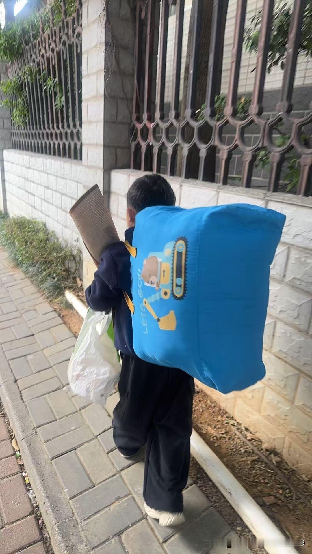 放假了,孩子坚持自己背着行李走回家。小孩子真棒[赞][赞][赞][赞][赞]寒假