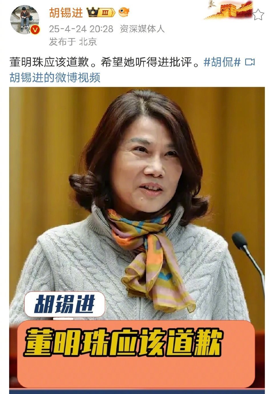 彭小苒称该道歉的是我彭小苒发文表示“莫(粉丝)不需要道歉,该道歉的是我”,承认疏