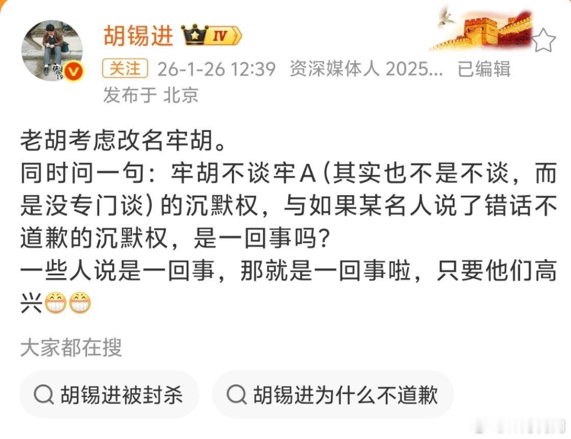 老胡考虑改名牢胡胡锡进就牢A斩杀线发评论 这个老贼🤮