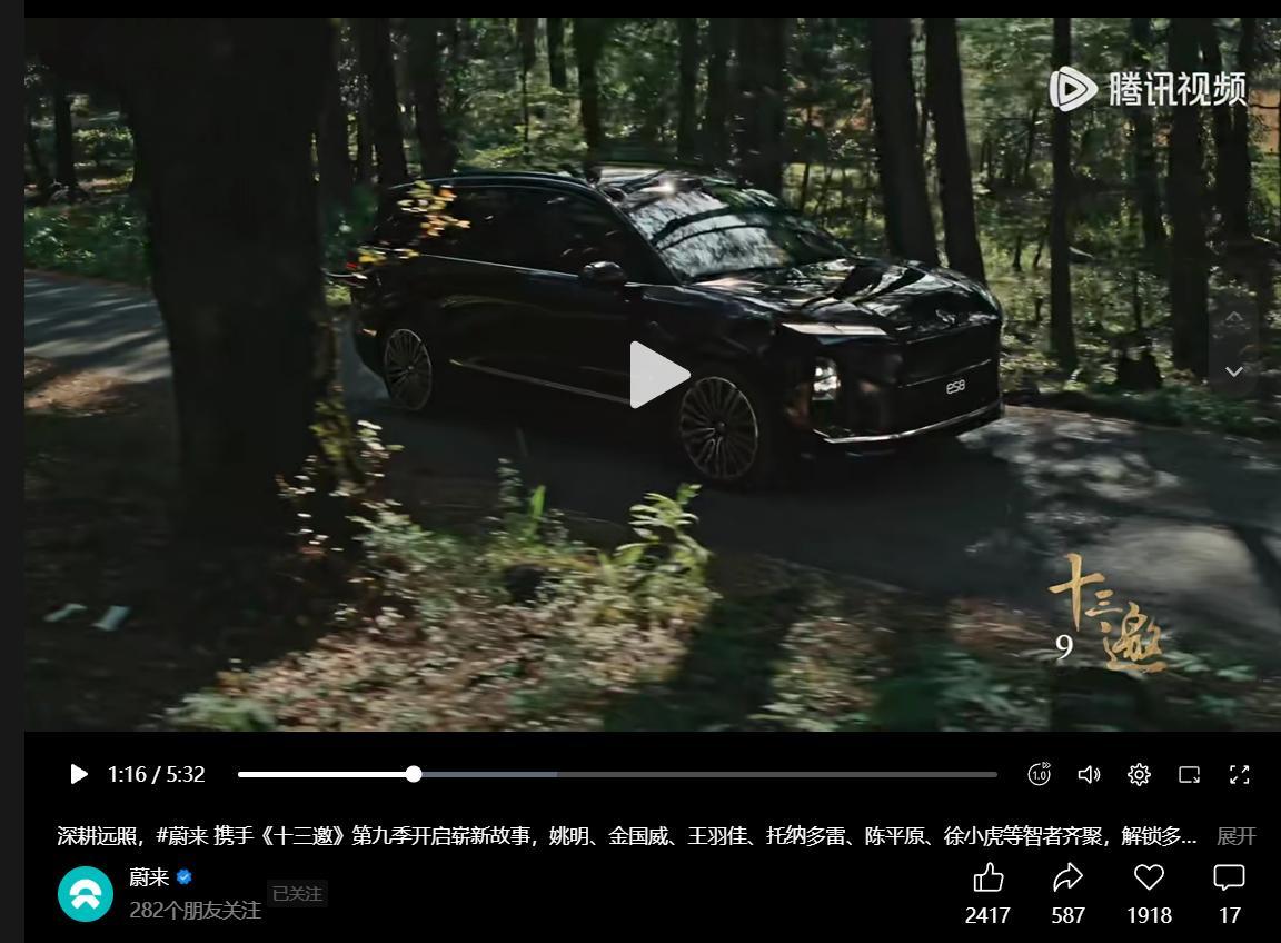 蔚来赞助了十三邀第九季。简直是双厨狂喜,蔚来的调性非常适合十三邀这类深度访谈节目