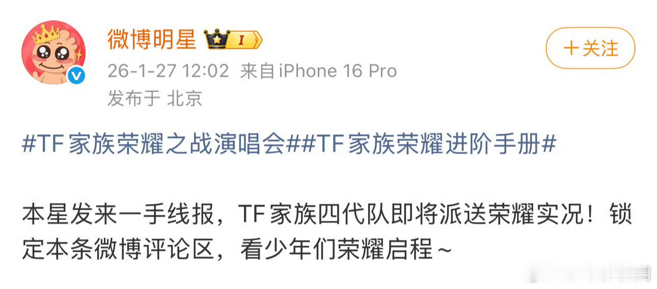 TF家族荣耀之战演唱会 新策划太会了💥空降微博明星评论区,近距离互动福利拉满~跟着少年们解锁TF家族荣耀进阶手册,一起奔赴荣耀之战!