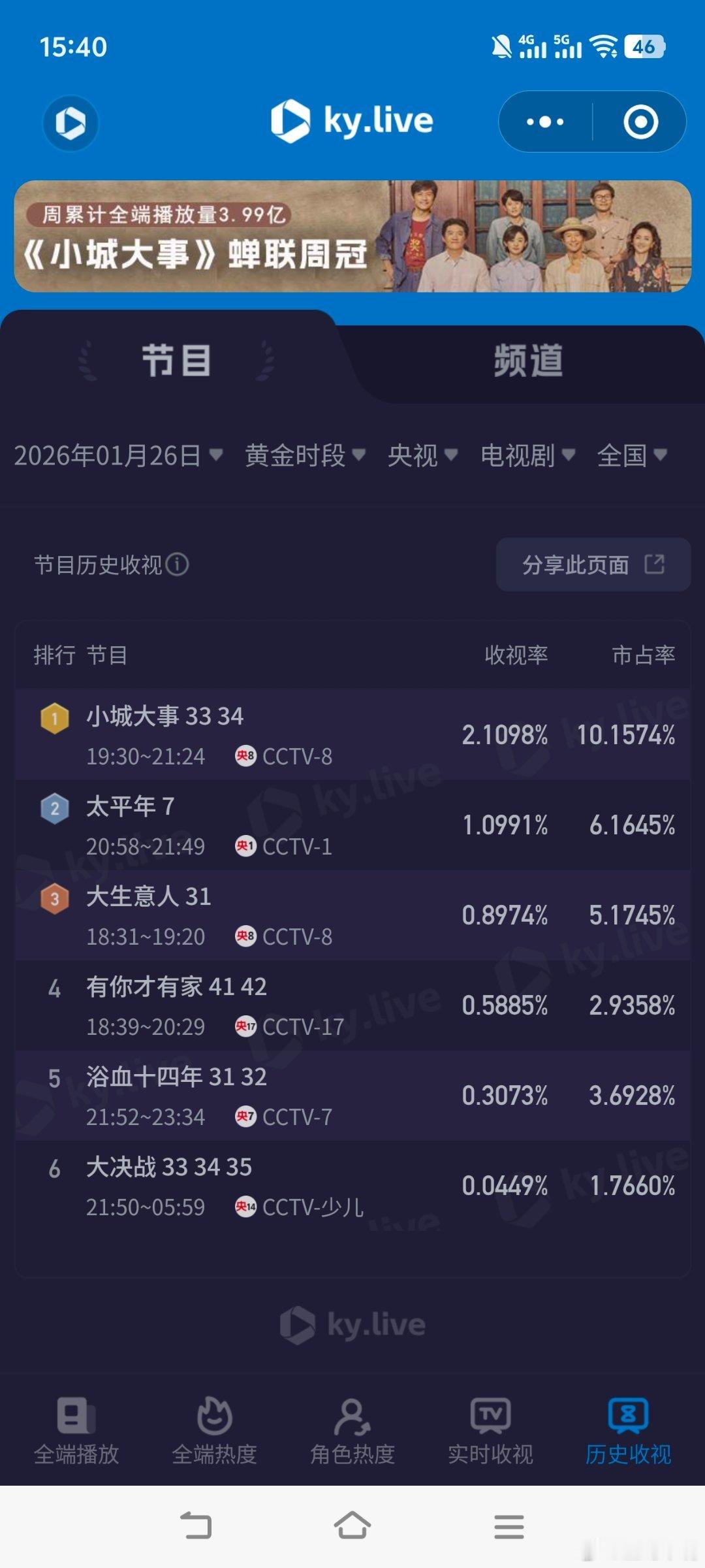 导演说的话黄晓明是真听进去了1月26日cvb收视日报!太平年 2.567,酷云1.0991,系数2.335小城大事1.829,酷云2.1098,系数0.867暗潮缉凶0.430,酷云0.3883,系数1.107女神蒙上眼0.381,酷云0.4976,系数0.766