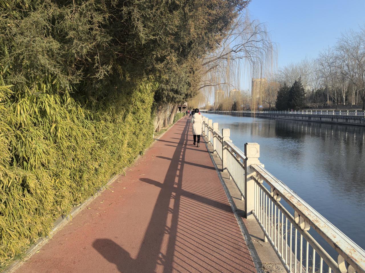 漫步北京二环护城河,尽揽京城独韵。冬日暖阳轻拂,河面凫鸭悠游,岸畔翁叟垂纶、妪媪