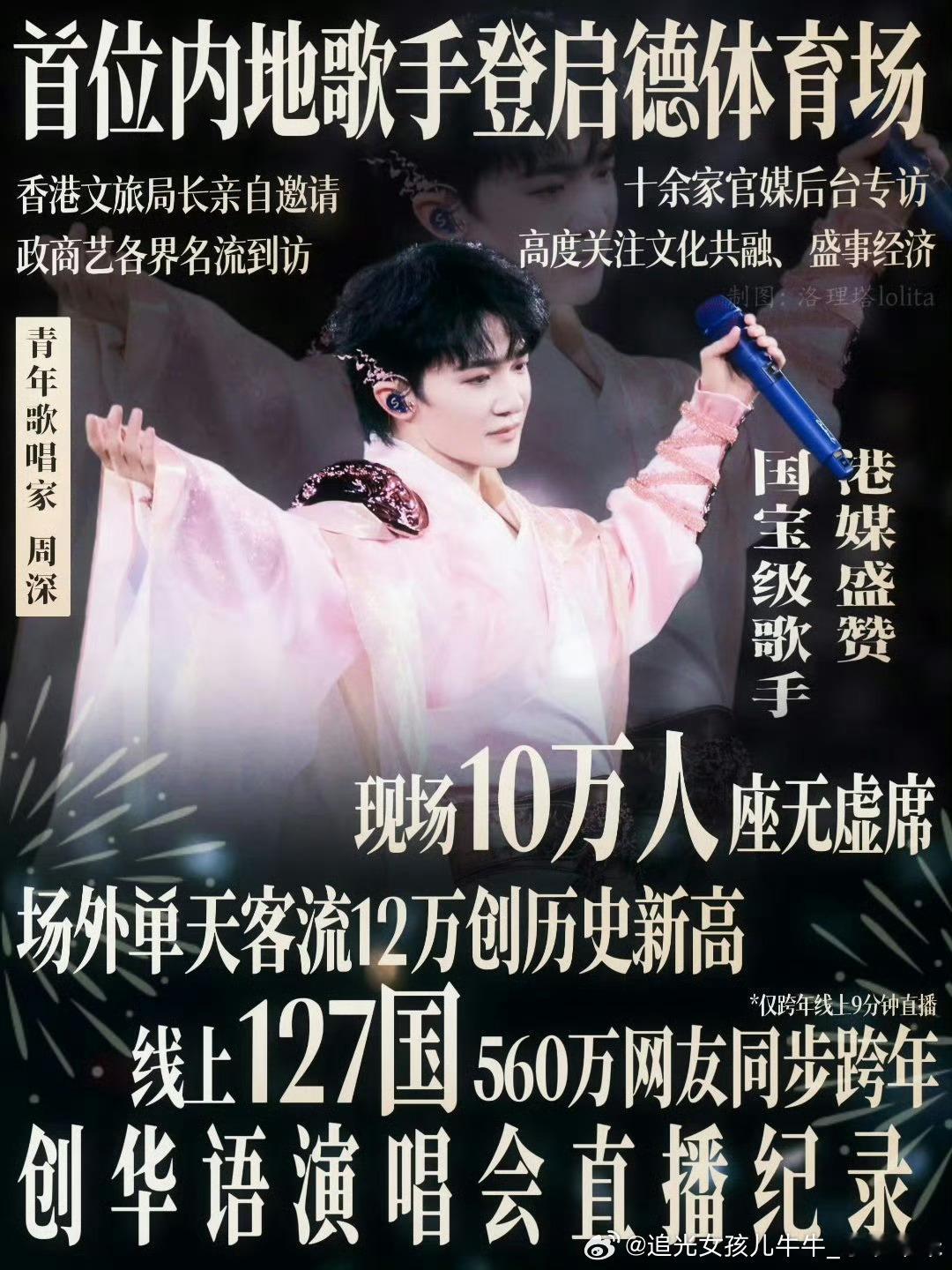 微博之夜向全世界安利我担年度好剧品鉴中下饭神综品鉴中微博之夜 周深 央视认证顶流歌手🔹大气蓬勃的时代之声🎶唱响时代之歌🎤百变声线,人间百灵鸟🎶Live的神,国民顶级大vocal🔥实力流量top,出圈舞台数不胜数🔥五年内四登春晚,四首原唱歌曲收录九年义务教材🔥首位内地歌手登香港启德主场🔥期待周深的精彩表现