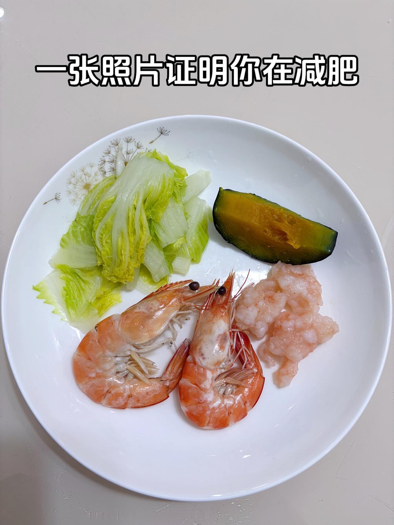 泪水打湿我的减脂餐,目标103斤,继续加油 今日减脂晚餐:南瓜+虾滑+虾+白菜