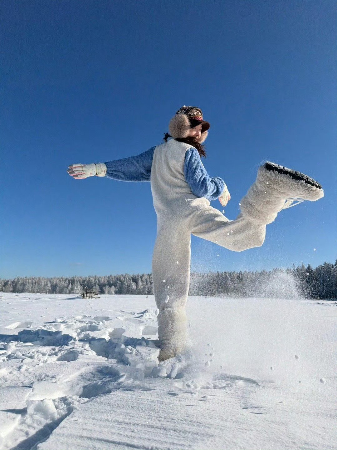 下次下雪一定要拍出这样的照片!!❄️章若楠雪地营业照章若楠雪地出片教程