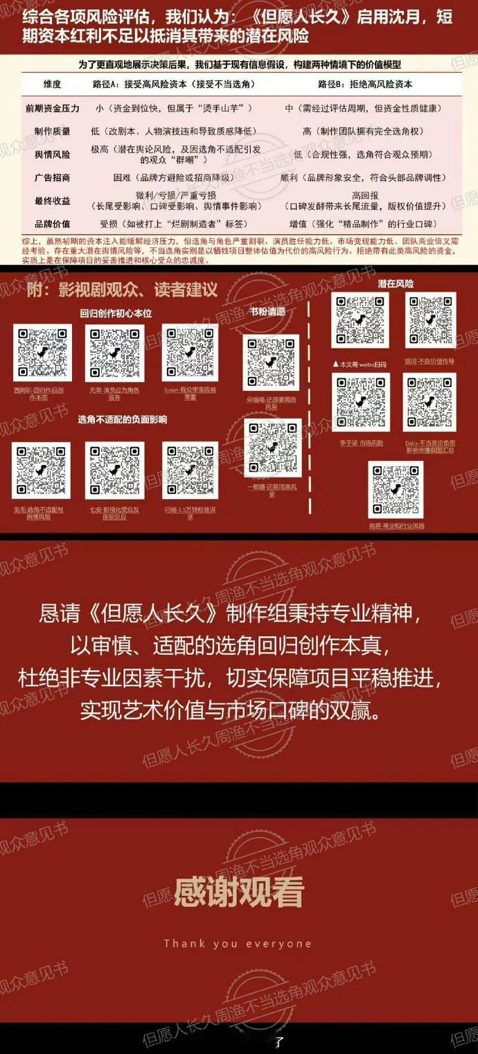 张晚意粉丝关于《但愿人长久》女主角选角做了超长ppt,总之就是永拒沈月。