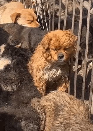 这是屠宰场里的狗狗们,它们被放在拥挤的笼子里,脏乱的环境,没有食物和水,等待它们的只有死亡,如果能够选择,它们希望的是一个温暖的家,而不是成为人们的盘中餐!