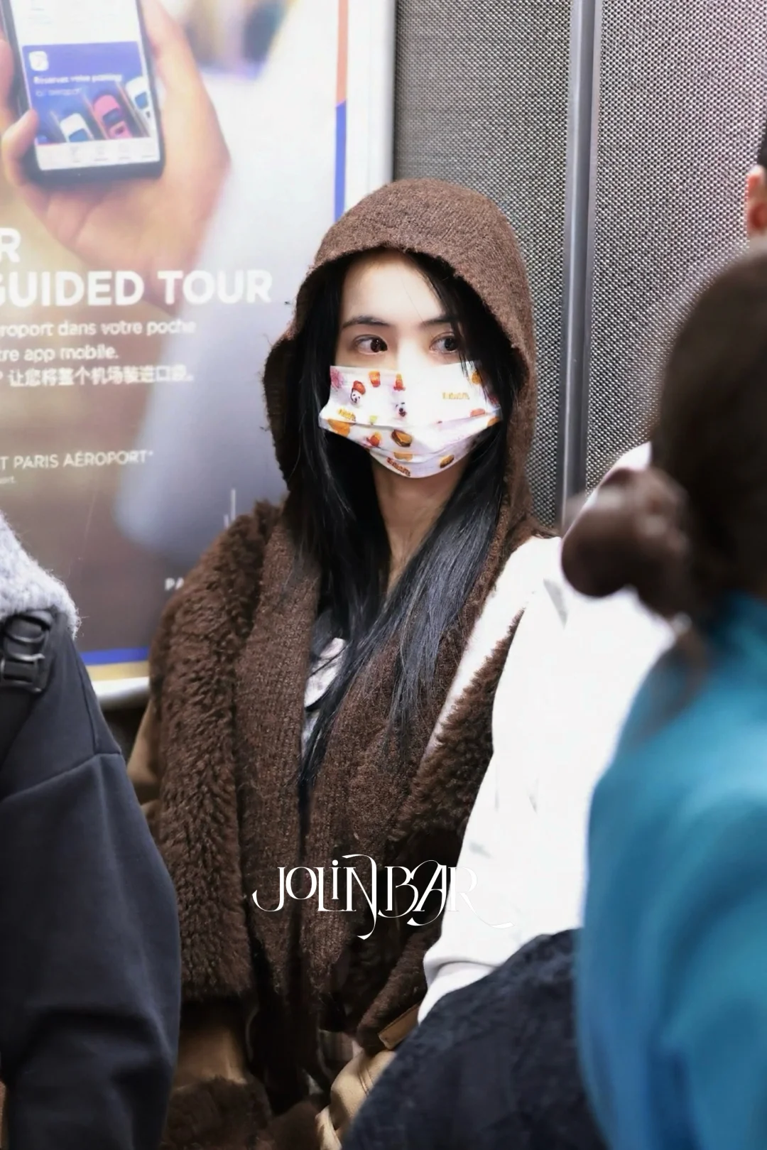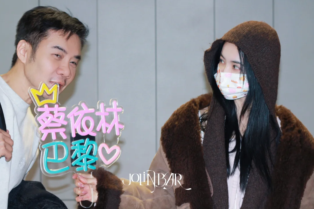 巴黎接机蔡依林高清美图妈咪被灯牌逗乐了