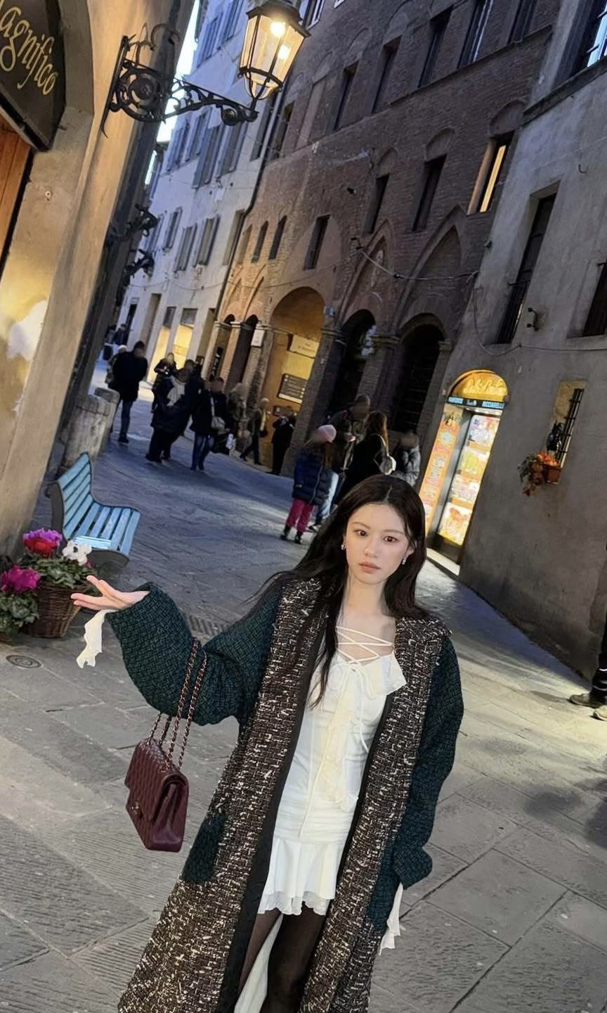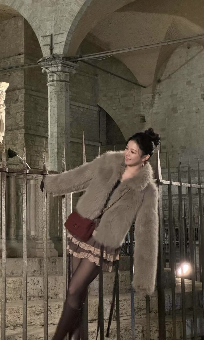 周也出发巴黎高定时装周,千鸟格大衣美丽!