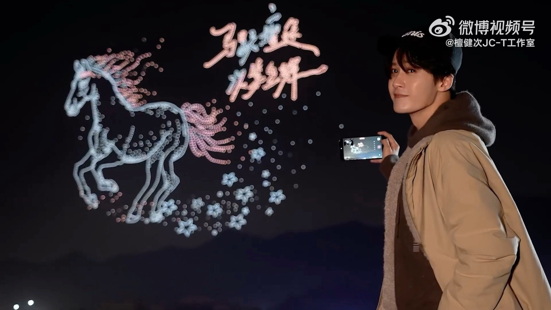 所以,我们应援的全过程,他都看到了🥹怕大家不安全于是在车里拿着手机看打铁花翻牌,和我们一起合唱《那些荧火》,还开了双摄记录、跑了好远找到视野最好的天台看无人机,还偷偷溜进了直播间,横店的夜晚那么冷,健次就坐在天台上听我们喊“檀健次,我爱你”,眼眶红红的还掉了小珍珠🥹健次,你幸福就好🥹,这次你不再是一个人了,以后会有更多更多的人陪着你,希望你掉的眼泪永远是幸福的泪水😿檀健次何不同舟渡/ 檀健次谢却山
