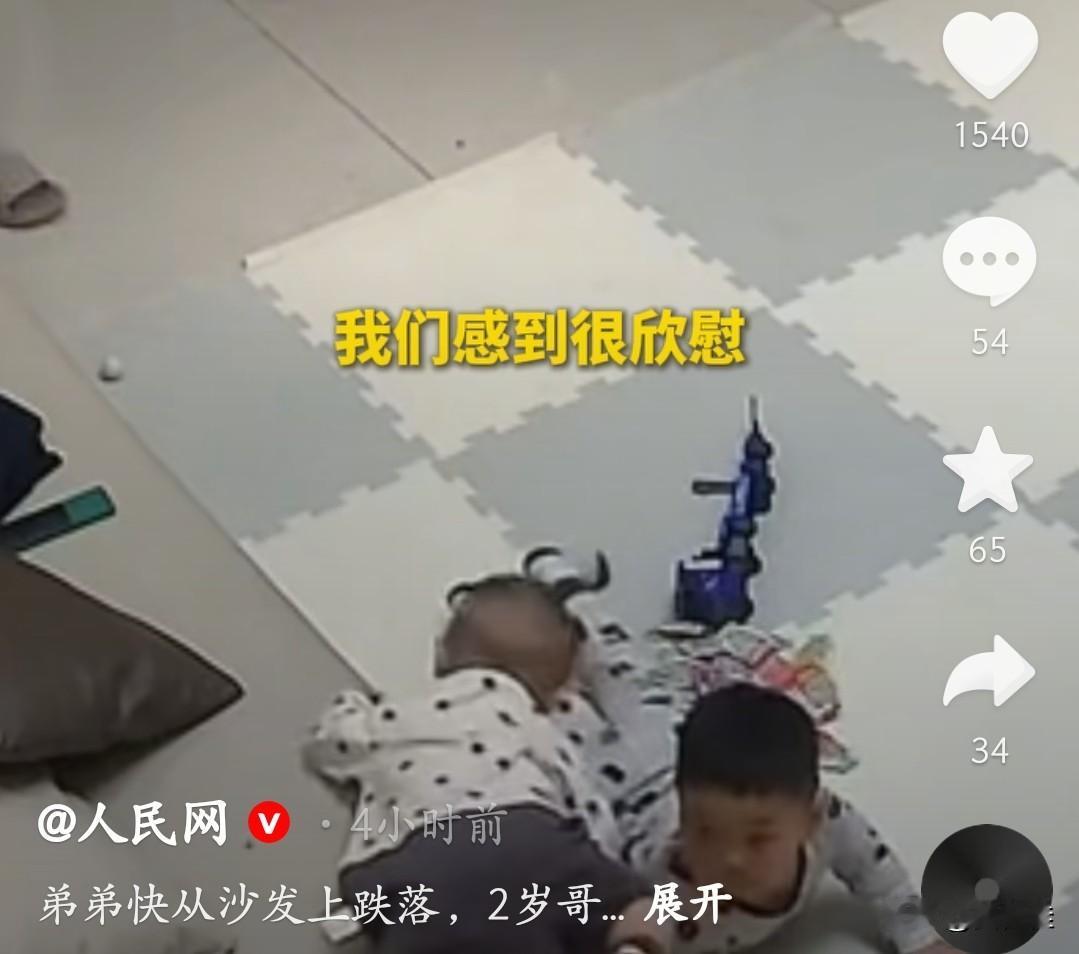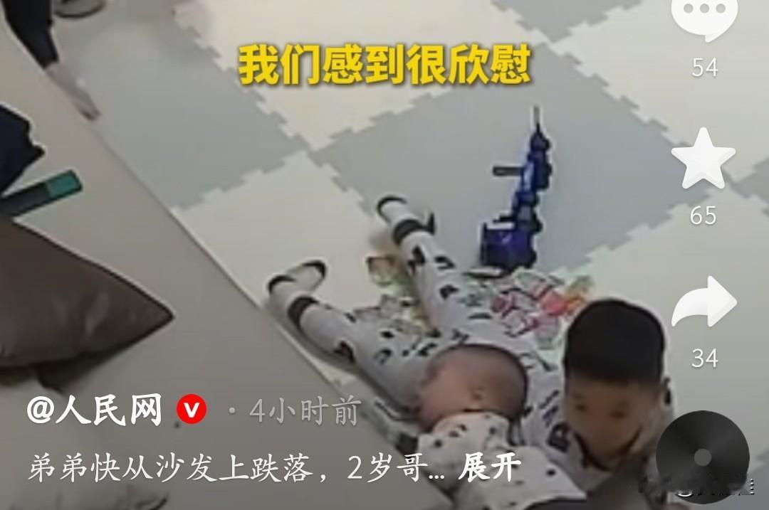 2026年最暖的“哥哥”出现了,还上了“人民网”! 一个2岁的小男孩,在弟弟快要从沙发上摔下来的瞬间,毫不犹豫地扑到地上,用自己的小身体垫在了弟弟的身下。 弟弟稳稳落在哥哥柔软的肚子上,一点没磕到。全程不过几秒,却看哭了好多网友。孩子妈妈说,看到哥哥保护弟弟的样子,心里又暖又欣慰。 这个小小的动作,没有刻意的安排,全是刻在骨子里的本能。原来哥哥的守护,从这么小的年纪就开始了,这大概就是亲情最温柔的模样吧。