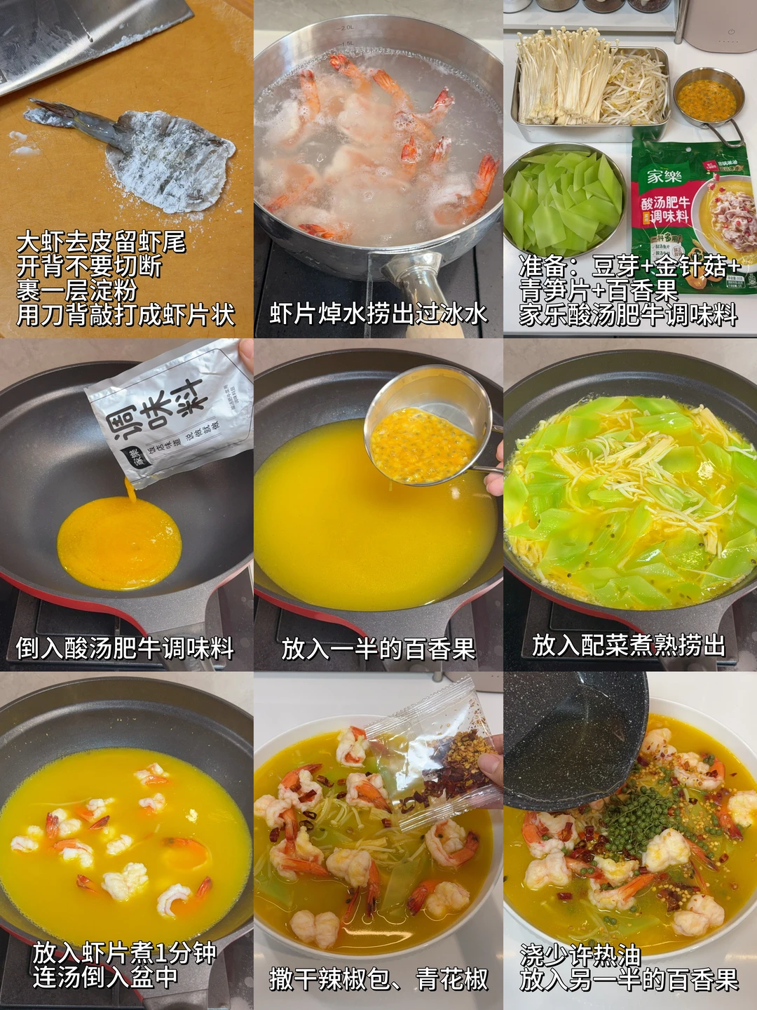 🍤【百香果酸汤虾片】平常酸汤虾也就是辣辣酸酸,今天我直接倒入百香果果肉,再结合家乐酸汤肥牛的经典酸辣汤底——果香+金汤,层次感直接拉满,虾片滑嫩入味,汤都能喝光光。