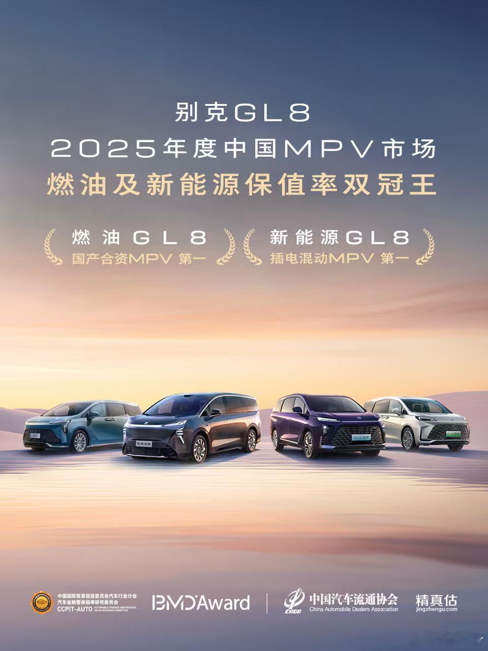在中国汽车流通协会发布的2025年度《中国汽车保值率报告》中,别克GL8家族在合资MPV和插电混动MPV两大细分榜单中均获得冠军,权威认证尽显GL8家族“保值王者”风采。承袭27年技术积淀、200万用户信赖、全生命周期的可靠品质,别克GL8家族始终践行“价值”本质,以燃油GL8连续五年排名No.1,新能源GL8力压群雄荣登一年保值率榜首的“双冠王”成绩,持续夯实MPV“硬通货”的市场认知。开年见喜,目前订购GL8新能源车型可享受:“GL8陆尊购置税加码补贴15000元”、“GL8陆尚购置税全免”双重购车礼遇,“买得省+用得值”必选GL8。2026年值得买的“硬通货”现在行动立省15000元有家有业有GL8