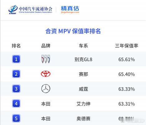 在中国汽车流通协会发布的2025年度《中国汽车保值率报告》中,别克GL8家族在合