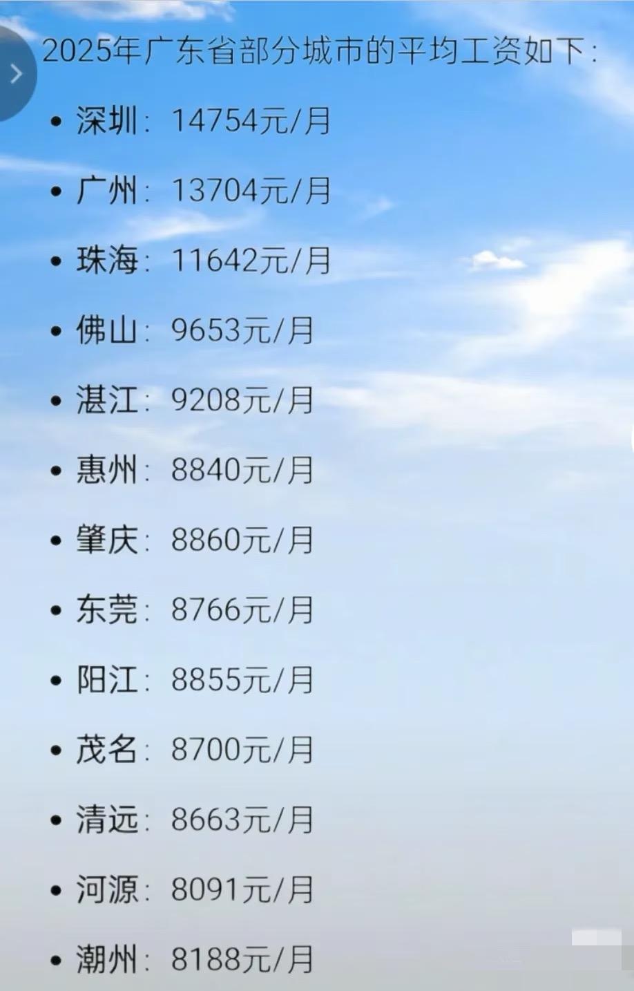 普通人想月薪过万,实在太难了…… 刚在某网站看到广东2025年各市最新平均月工资,月薪超万的仅有三个市。作为经济较为发达的省份,广东也不过三个市能达到月薪过万的水平,由此可见,普通人想实现月薪过万,真的困难重重。 前段时间,我去一家电动车厂面试。每天7:45就得进车间,正常上班要到晚上八九点,旺季更是要加班到十一二点。每月休息2 - 4天,还不能自主安排。工作时全程站着,每做两小时才能休息十分钟。流水线的速度极快,干了几年的老员工都忙得手忙脚乱、匆匆忙忙赶进度。一问工资,也就六千多人民币。这可是在全国较为发达的广东,而且还是电动车头部品牌企业。这便是普通人的真实写照。